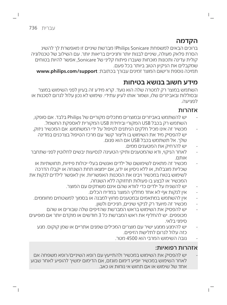 - Consommateurs de votre pays. Si le câble USB est endommagé, cessez de l’utiliser. Gardez les chargeurs à l’écart de l’eau. Après les avoir nettoyés, assurez-vous que les chargeurs et les coffrets de voyage sont complètement secs avant de les brancher. Cet appareil peut être utilisé par des enfants, des personnes dont les capacités physiques, sensorielles ou intellectuelles sont réduites ou des personnes manquant d'expérience et de connaissances, à condition que ces enfants ou personnes soient sous surveillance ou qu'ils aient reçu des instructions quant à l'utilisation sécurisée de l'appareil et qu'ils aient pris connaissance des dangers encourus. Le nettoyage et l'entretien ne doivent pas être effectués par des enfants sans surveillance. Les enfants doivent être surveillés pour s'assurer qu'ils ne s'amusent pas avec le produit. Ne nettoyez aucune pièce du produit au lave-vaisselle. N’utilisez pas les adaptateurs et chargeurs à l’extérieur ou près de surfaces chauffantes. Cet appareil a été conçu uniquement pour le brossage des dents, des gencives et de la langue.