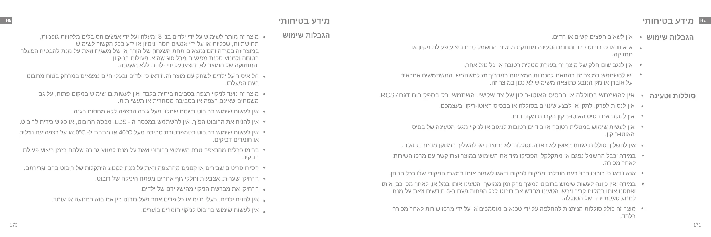 - Ne mettez pas d'enfants, d'animaux ou d'objets sur Le robot, qu'il soit à l'arrêt ou en mouvement.