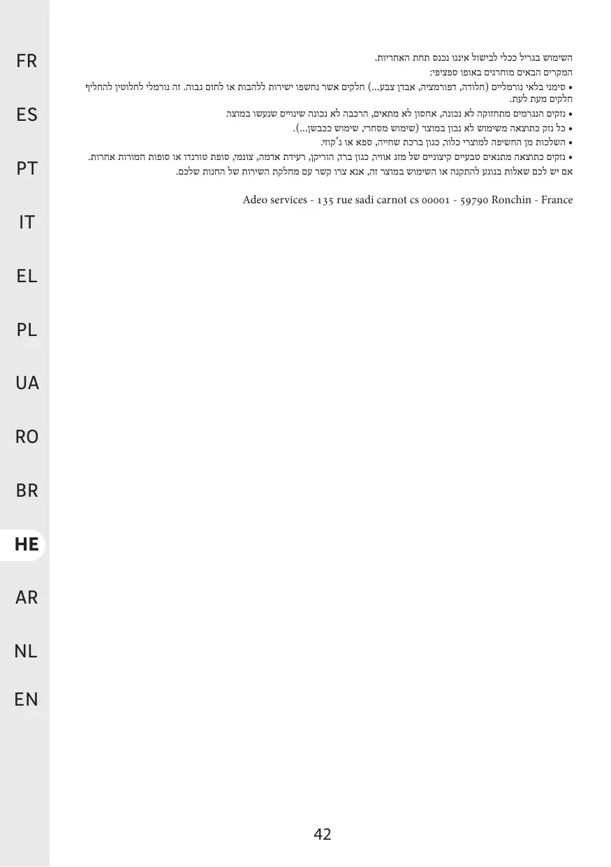 Adeo services - 135 rue Sadi Carnot cs 00001 - 59790 Ronchin - France.
