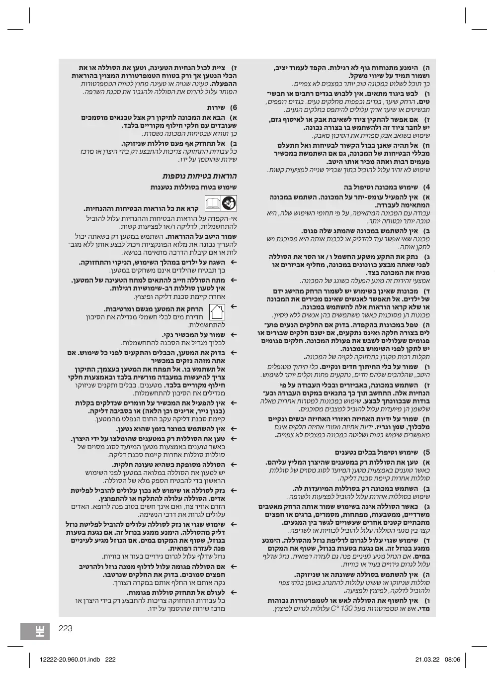 — Ne nettoyez pas le produit avec de l’eau ou avec un jet d’eau (surtout un jet d’eau à haute pression).