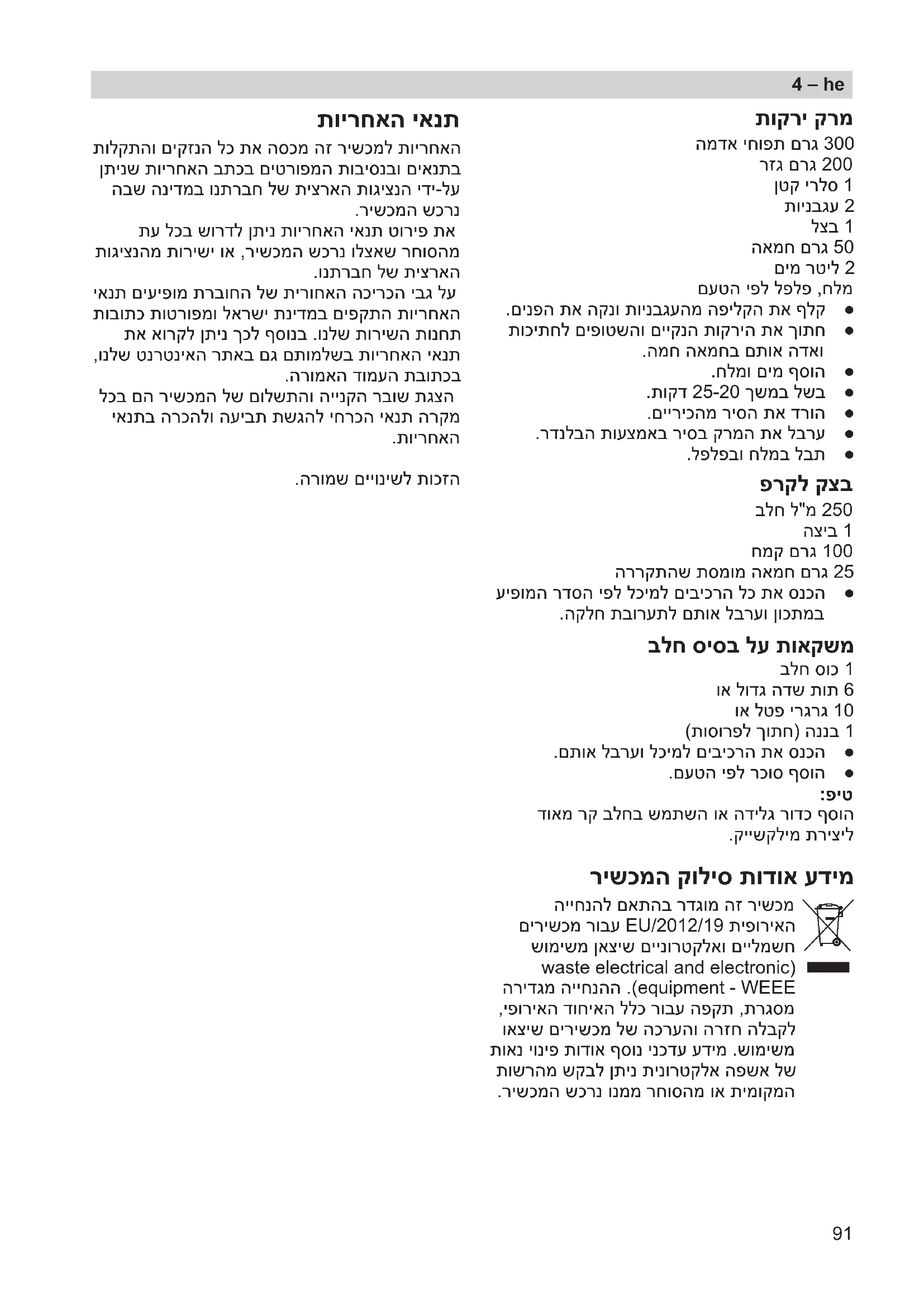 הייחנהל םאתהב רדגומ הז רישכמ םירישכמ רובע EU/2012/19 תיפוריאה שומישמ ןאציש םיינורטקלאו םיילמשח waste electrical and electronic( הרידגמ הייחנהה .)equipment - WEEE ,יפוריאה דוחיאה ללכ רובע הפקת ,תרגסמ ואציש םירישכמ לש הכרעהו הרזח הלבקל תואנ יוניפ תודוא ףסונ ינכדע עדימ .שומישמ תושרהמ שקבל ןתינ תינורטקלא הפשא לש .רישכמה שכרנ ונממ רחוסהמ וא תימוקמה תוירחאה יאנת תולקתהו םיקזנה לכ תא הסכמ הז רישכמל תוירחאה ןתינש תוירחאה בתכב םיטרופמה תוביסנבו םיאנתב הבש הנידמב ונתרבח לש תיצראה תוגיצנה ידי-לע .רישכמה שכרנ תע לכב שורדל ןתינ תוירחאה יאנת טוריפ תא תוגיצנהמ תורישי וא ,רישכמה שכרנ ולצאש רחוסהמ .ונתרבח לש תיצראה יאנת םיעיפומ תרבוחה לש תירוחאה הכירכה יבג לע תובותכ תוטרופמו לארשי תנידמב םיפקתה תוירחאה תא אורקל ןתינ ךכל ףסונב .ונלש תורישה תונחת ,ונלש טנרטניאה רתאב םג םתומלשב תוירחאה יאנת .הרומאה דומעה תבותכב לכב םה רישכמה לש םולשתהו היינקה רבוש תגצה יאנתב הרכהלו העיבת תשגהל יחרכה יאנת הרקמ