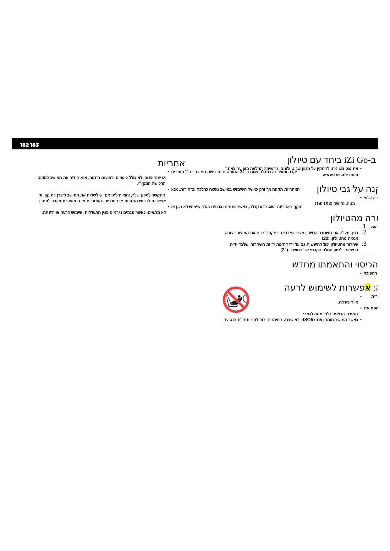 BeSafe iZi Go-ב תרחבש הדות ! ינויח עדימ ! •.בשומה•תא•ביכרמ•התאש•ינפל•הז•שמתשמל•ךירדמ•תא•ארקתש•דואמ•בושח .ךדלי•תא•ןכסל•הלוכי•הנוכנ•אל•הנקתה188 189