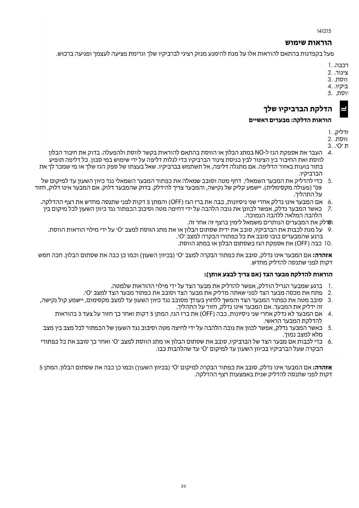 4. תוארוהב 3 דעצ לע רוזח ךכ רחאו תוקד 5 ןתמה ,זגה זרב תא )OFF( הבכ ,תונויסינ ינש ירחא קלדנ אל רעבמה םא