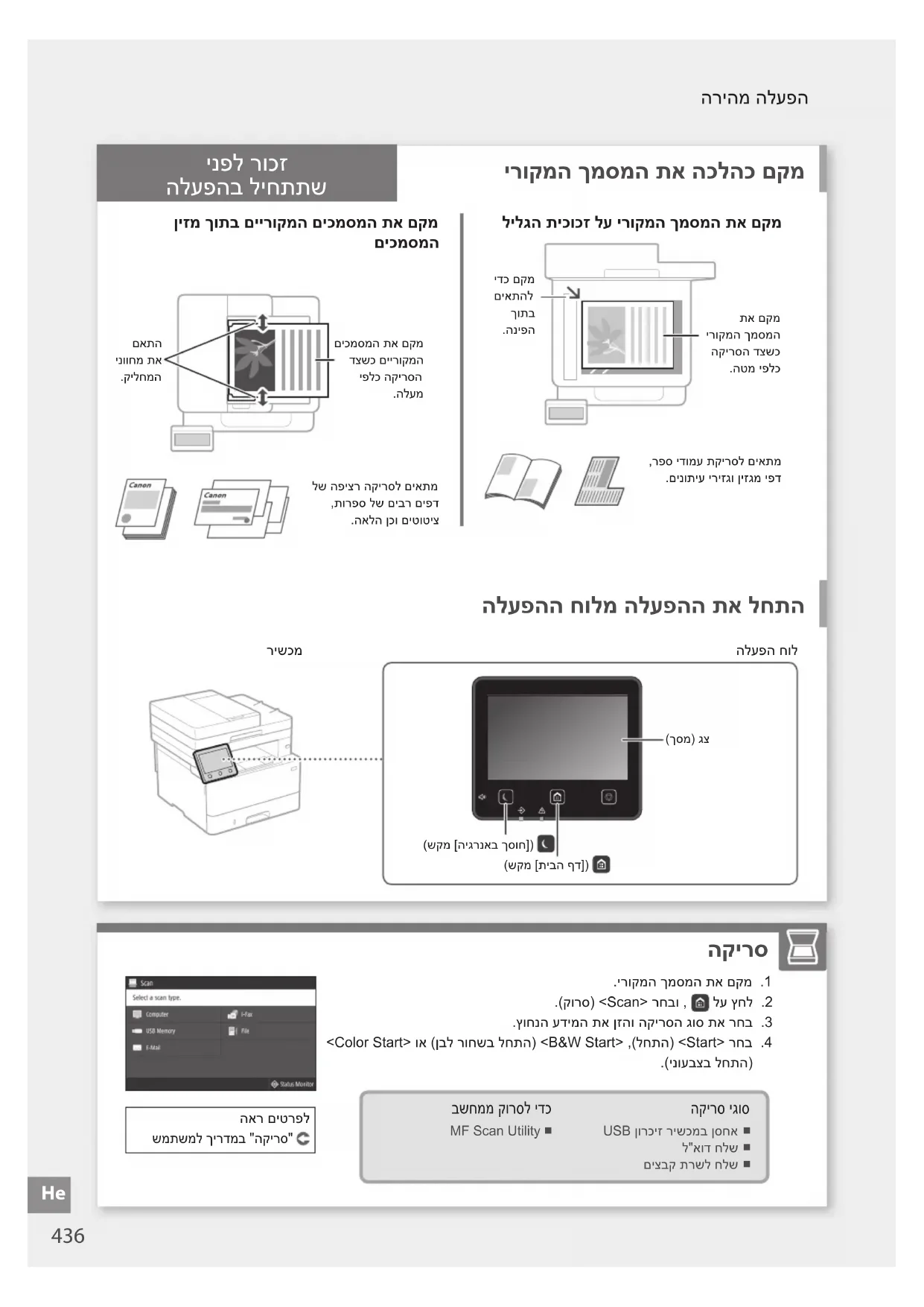 בשחממ קורסל ידכ MF Scan Utility האר םיטרפלשמתשמל ךירדמב "הקירס" הריהמ הלעפה הלעפה חול)ךסמ( גצ)שקמ ]היגרנאב ךסוח[( )שקמ ]תיבה ףד[( He.ירוקמה ךמסמה תא םקמ .1.)קתעה( >Copy< רחב ןכמ רחאלו , לע ץחל .2.שרדנכ קתועה תורדגה תא ןייצ .3.שורדה םיקתועה רפסמ תא ןזה .4.)לחתה( >Start< רחב .5 תוישומיש קתוע תורדגה 1-ב N ידדצ-דח וא ידדצ-וד הנטקה וא הלדגה תוהז יסיטרכ תקתעה .ירוקמה ךמסמה תא םקמ .1.)סקפ( >Fax< רחבו , לע ץחל .2.דעיה יטרפ תא ןזה .3.שרדנכ סקפה תורדגה תא ןייצ .4.)לחתה( >Start< רחב .5 תוישומיש סקפ תויצקנופ