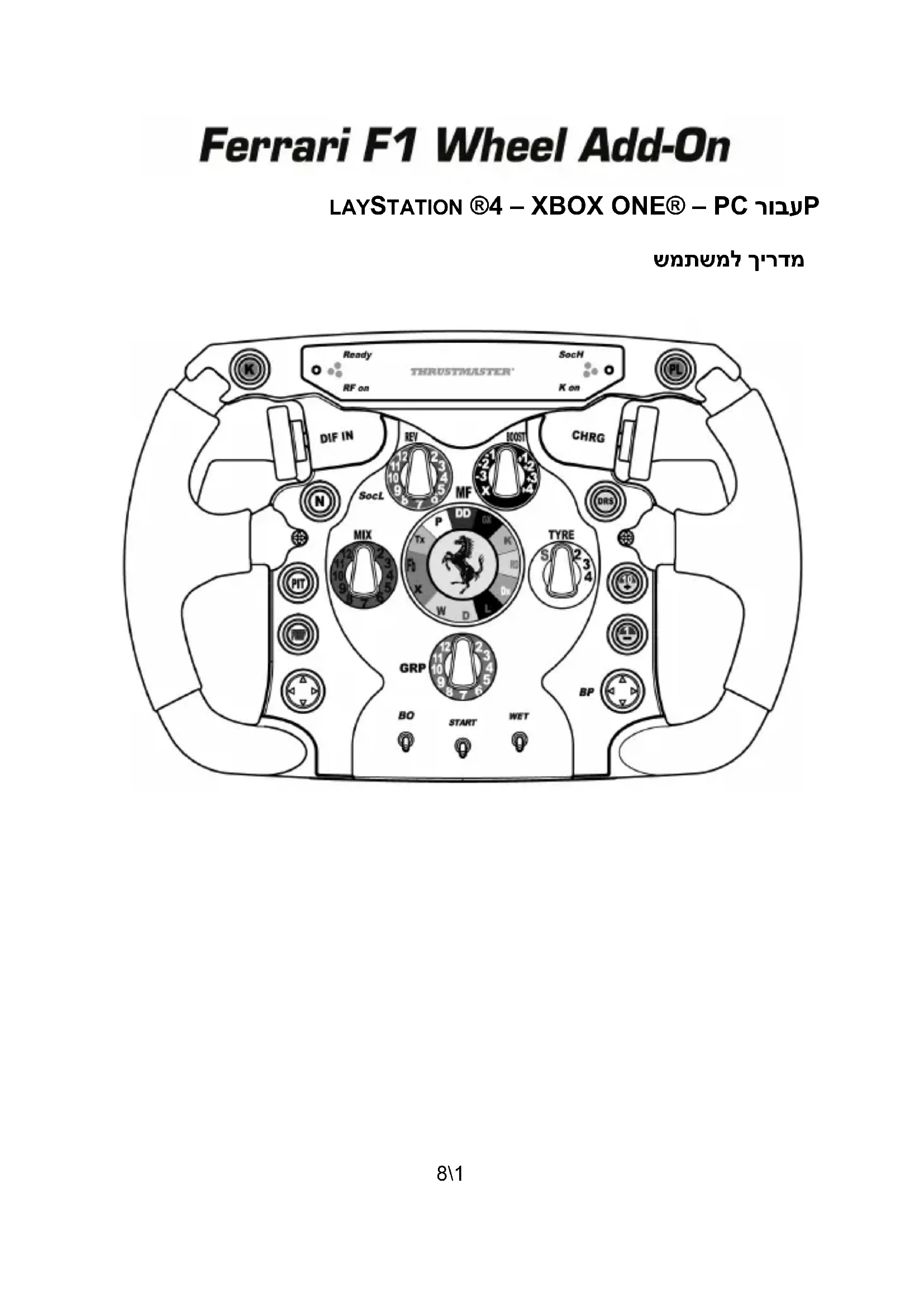 Ferrari F1 Wheel AddOn - בקר THRUSTMASTER - מדריך משתמש חינמי