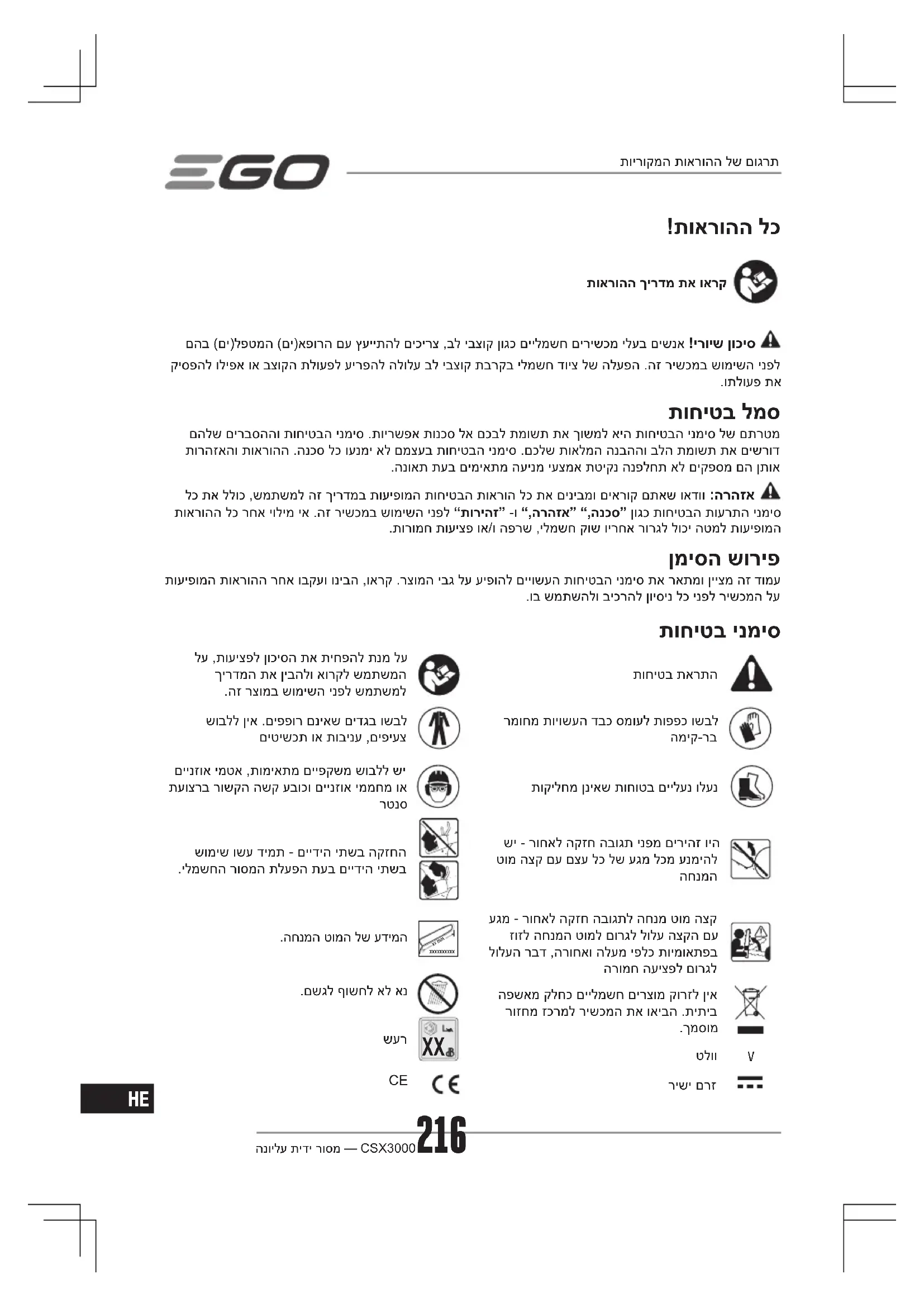 CSX3000 - מסור EGO - מדריך משתמש חינמי