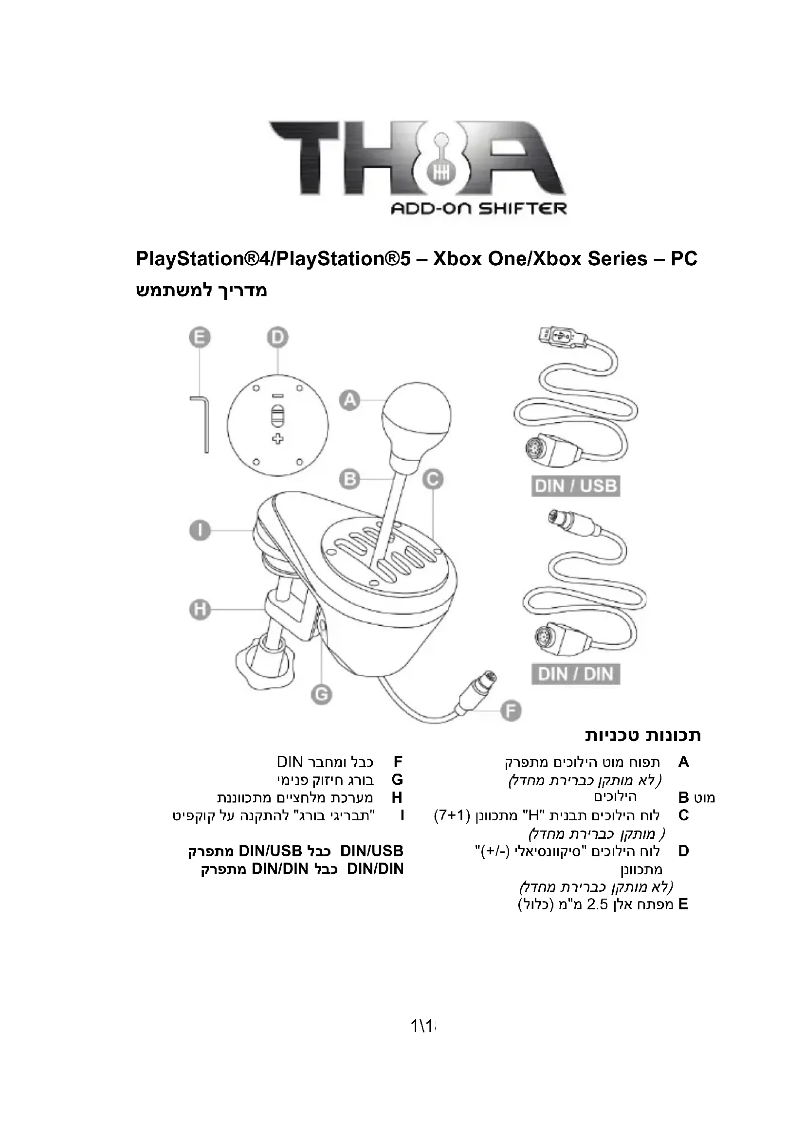 - םיכוליהה טומ תא ורבחTH8A .םיצורמה הגה תבשותב ירוחאה קלחבש םיכוליהה טומ רבחמל - .קחשמה תא וליעפהו םיצורמה הגה תא ורבח םיכוליהה טומTH8A תינבתב םיכוליה תוחול םע לועפל לוכיH )7+1.ילאיסנווקיס חול וא ( (*) תכרעמל תובושח תוצלמה™PS5/™PS4 םיצורמה הגה םא קר יטנוולר) Thrustmaster (הנבומ םיכוליה טומ רבחמ םע עיגמ - :PS4™/PS5™) ילאיסנווקיס םיכוליה חולב שומישב-/ טומב (+TH8A תא רבחל םג ולכות , לבכ תרזעב םיצורמה הגה לש ירוחאה קלחב םיכוליהה טומDIN/DIN .קתנתמה םיכוליהה טומ