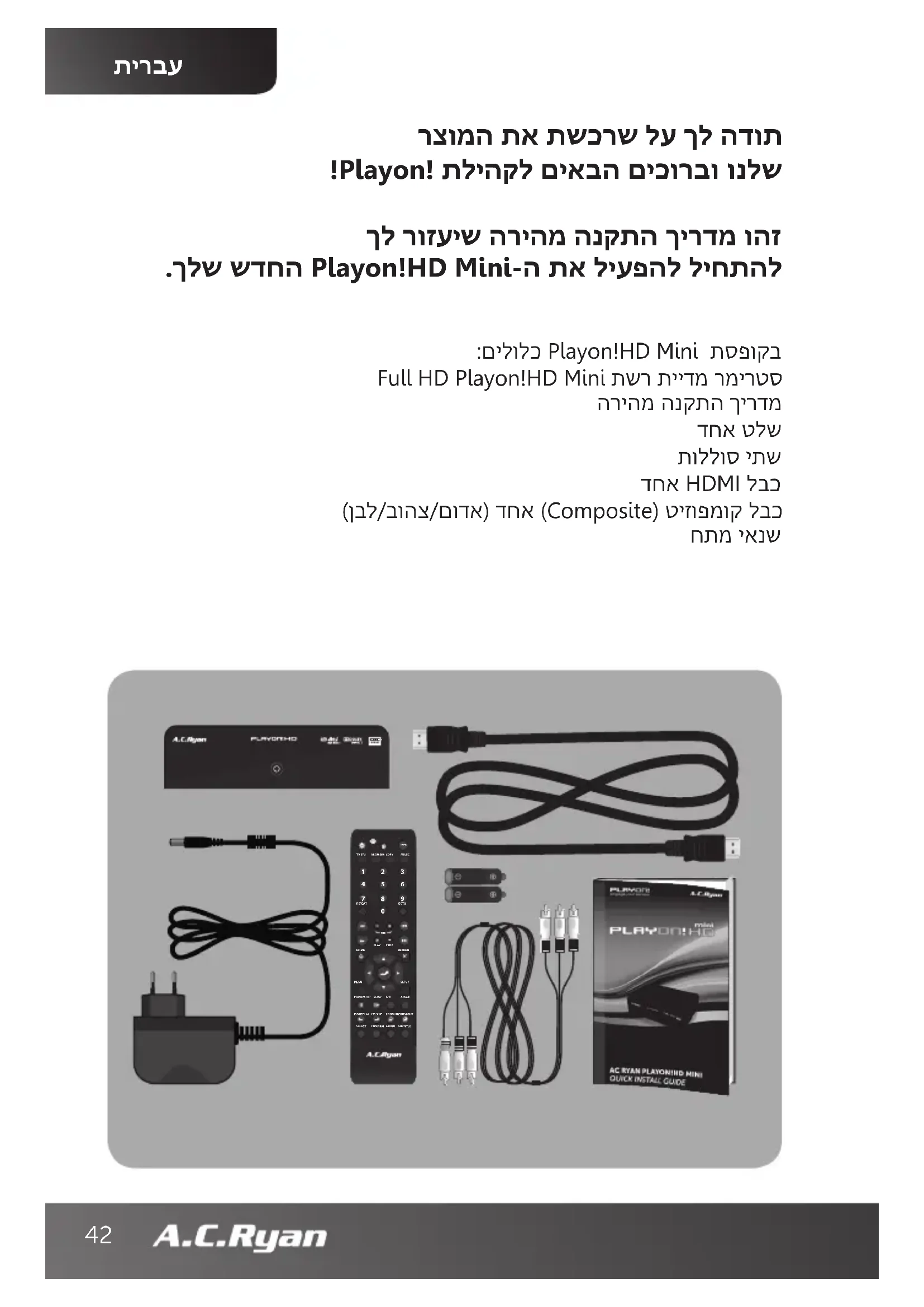 Playon!HD Mni ACRPV73200 - נגן מדיה AC Ryan - מדריך משתמש חינמי