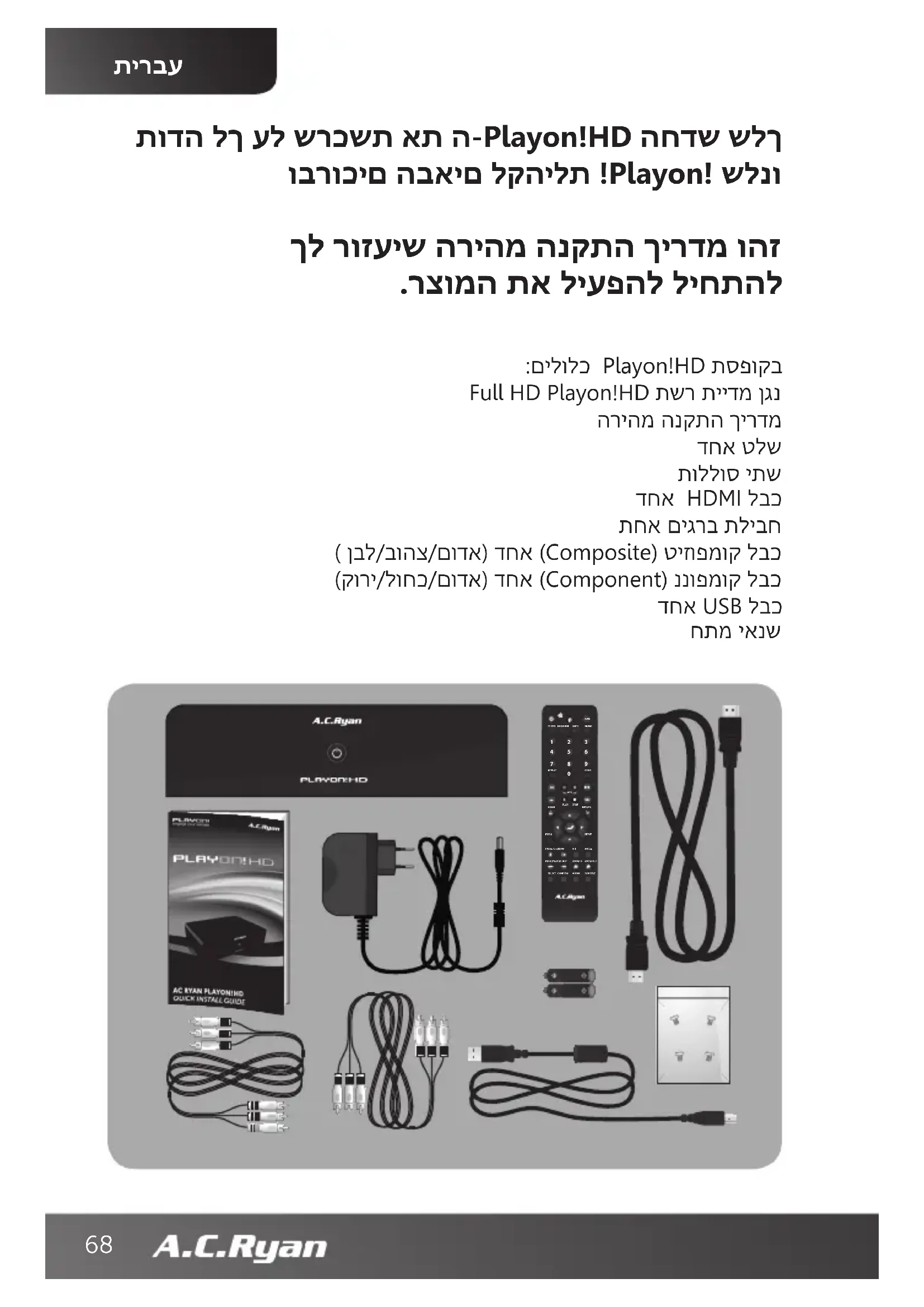 תודה לך על שרכשת את ה-Playon!HD החדש שלך וברוכים הבאים לקהילת !Playon! שלנו ךל רוזעיש הריהמ הנקתה ךירדמ והז .רצומה תא ליעפהל ליחתהל :םילולכ Playon!HD תספוקב Full HD Playon!HD תשר תיידמ ןגנ הריהמ הנקתה ךירדמ