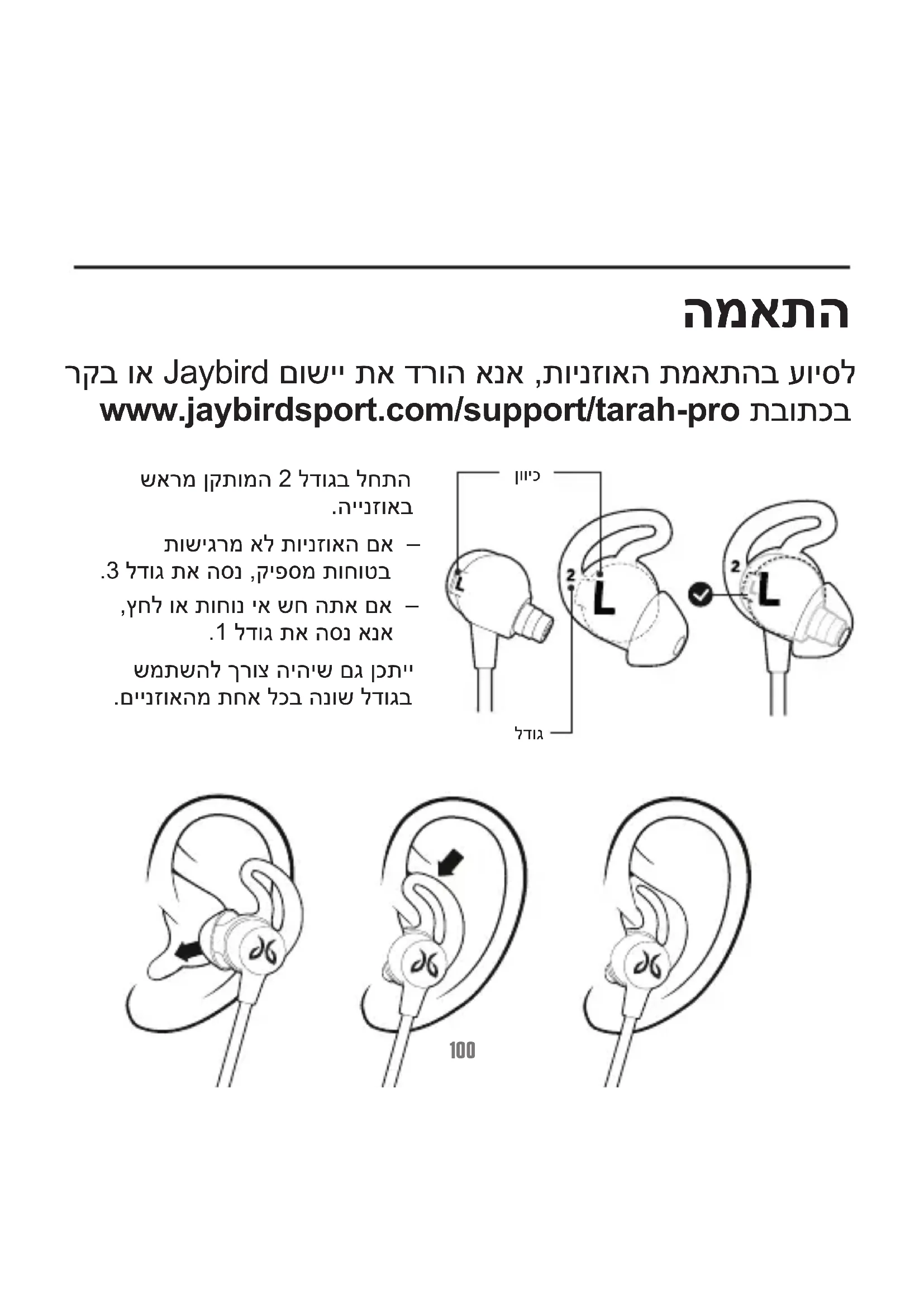 הריהמ הלחתה Jaybird Tarah Pro100 רקב וא Jaybird םושיי תא דרוה אנא ,תוינזואה תמאתהב עויסל www.jaybirdsport.com/support/tarah-pro תבותכב