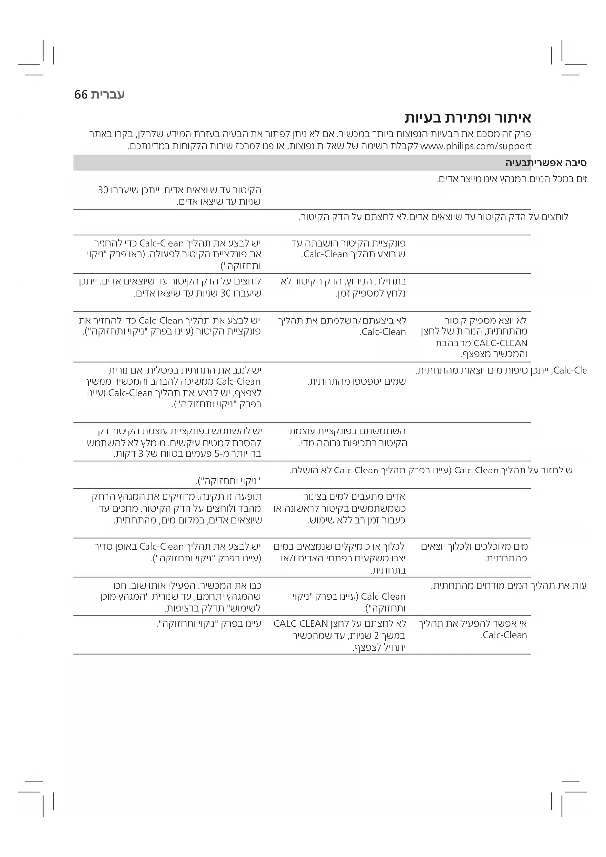 http://www.philips.com/descaling- :הז רושיקב םינוטרסב אוצמל רשפא Calc-Clean ךילהת עוציב לע ףסונ עדימ .iron