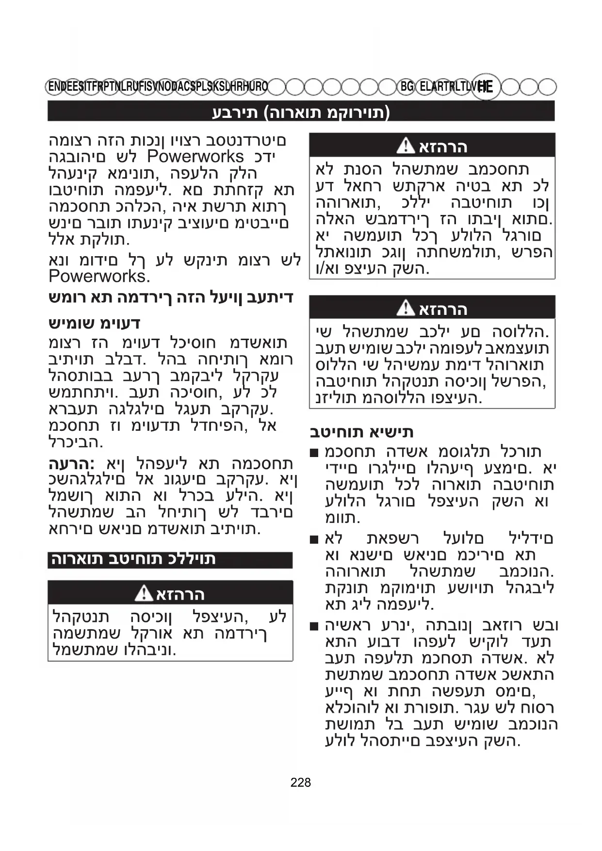 EL AR TR LT LV ET המוצר הזה תוכנן ויוצר בסטנדרטים הגבוהים של Powerworks כדי להעניק אמינות, הפעלה קלה ובטיחות המפעיל. אם תתחזק את המכסחת כהלכה, היא תשרת אותך שנים רבות ותעניק ביצועים מיטביים
