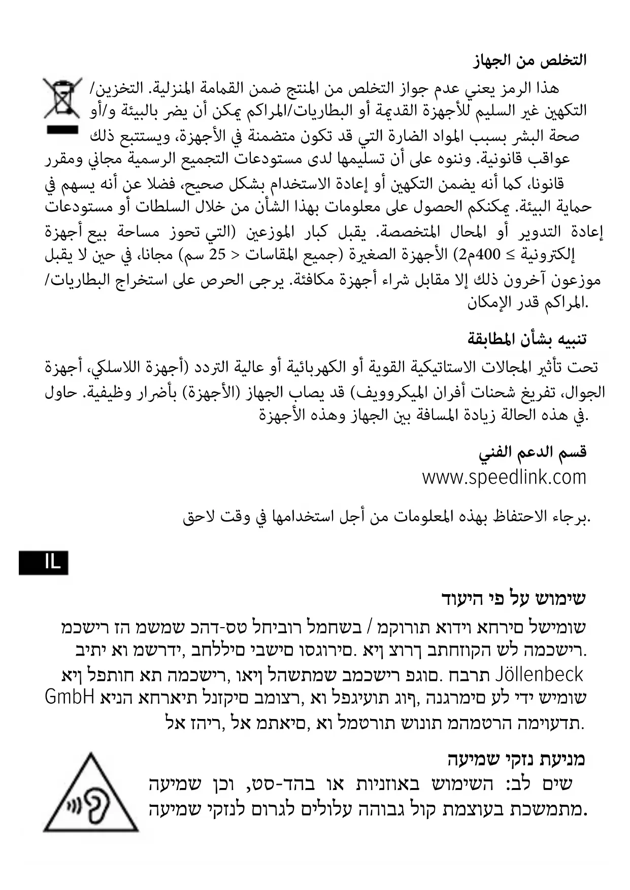 .תיתיבה הפשאב הז רצומ תונפל רוסא יכ ןמסמ הז למס ללכמ ואצי רשא םירישכמ לש םיתואנ אל הטירג/ןוסחא יתביבס קזנל םורגל םייושע ,םירבצמ/תוללוס לש וא ,שומיש םהש םיקיזמה םירמוחהמ האצותכ תואירב תואירב יקזנל וא/ו הריסמה .קוח יפ לע השינע ידעצל ליבוהל ףא יושע רבדהו ,םיליכמ יפ לע תבייחתמו ,םולשת אלל תעצבתמ תימשר ףוסיא תדוקנב תמרותו ,יתוחיטב רוזחימ/לוצינ וא יוניפ החיטבמ ףא איה .קוח וא ,ףוסיאה תודוקנ ,תויושרמ לבקל ןתינ עדימ .הביבסה תנגהל ירישכמ תריכמל חטש ילעב( תולודג תויונח .תומיאתמ תויונח 25 דע דמימ לכ( םינטק םירישכמ םילבקמ ) ר“מ 400 ≥ למשח יווש םירצומ תשיכר תרומת קר תורחא תויונח ,םולשת אלל )מ“ס רשפא םא ,תונעטנ תוללוס / תוללוס ריסהל שי .ךרע. תומיאת תרעה םירדת וא ,םיילמשח ,םייטטס תודש לש תיתועמשמ העפשה הלולע )ורקימ ילג קוריפ ,םידיינ םינופלט ,רשק תוכרעמ( םיהובג שי הז הרקמב .)םירישכמה( רישכמה דוקפתב םישובישל םורגל םיעירפמה םירישכמהמ קחרמה תא לידגהל תוסנל. תינכט הכימת www.speedlink.com ידיתע שומישל הז עדימ רומש אנא.