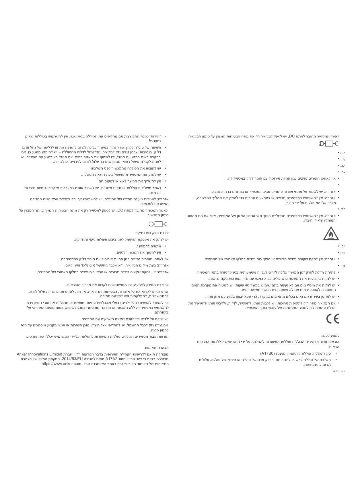 HE 123124 HE .רישכמה ןומיס לע ןיוצמה תוחיטבה חתמ תא קר רישכמל קפסל שי ,DC חתמל רבוחמ רישכמה רשאכ הקיתנ חוכ קפס תדיחי .הקוזחתו יוקינ תולועפ עוציב ינפל למשחה תקפסא תא קתנל שי .גניפמקל םיאתמ .םשגל רישכמה תא ףושחל ןיא .הז רישכמב קילד רמוח םע לוסוריא תויחפ ןוגכ םיציפנ םירמוח ןסחאל ןיא