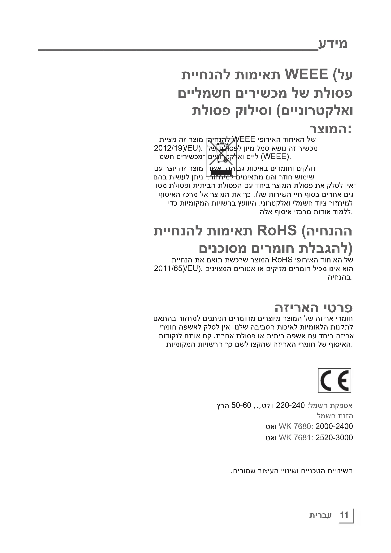 __________________________________ עדימ תייחנהל תומיאת WEEE (לע םיילמשח םירישכמ לש תלוספ תלוספ קוליסו (םיינורטקלאו