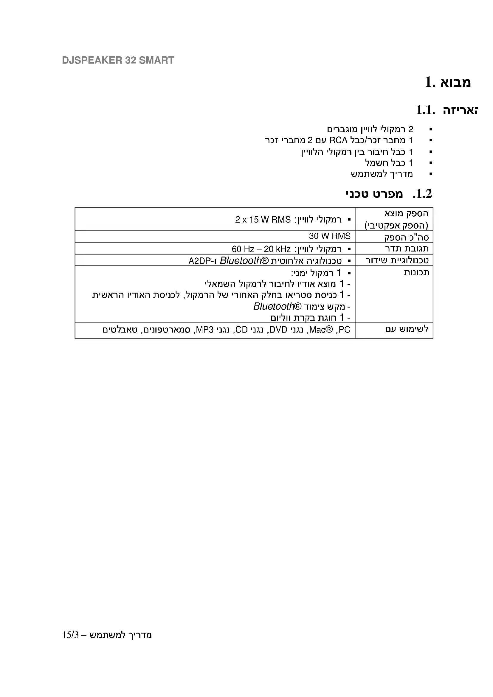 .בהבהל ליחתת הלוחכהDJSPEAKER 32 SMART 8/15 – שמתשמל ךירדמ
