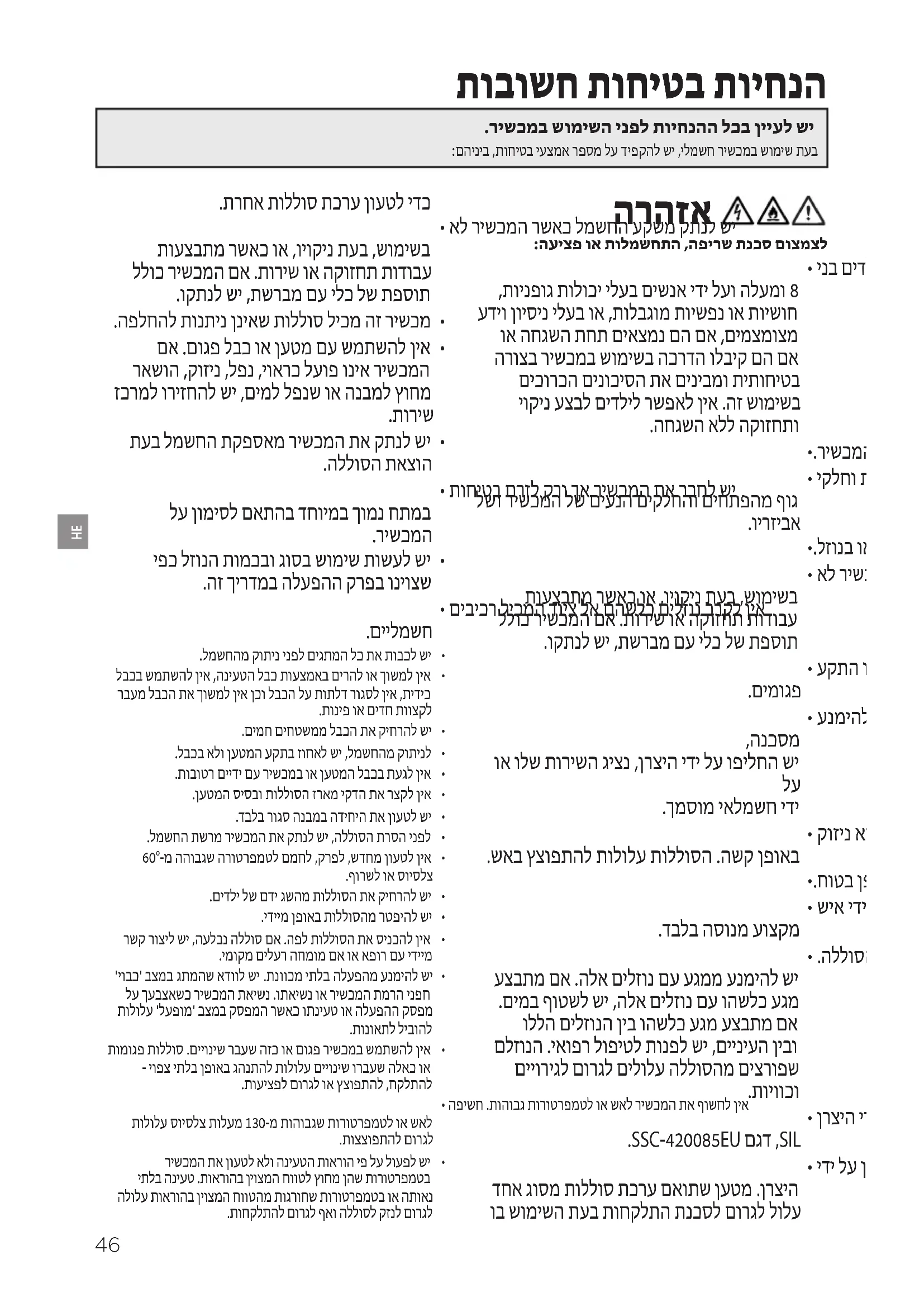 הנחיות בטיחות חשובות / אחריות צרכן