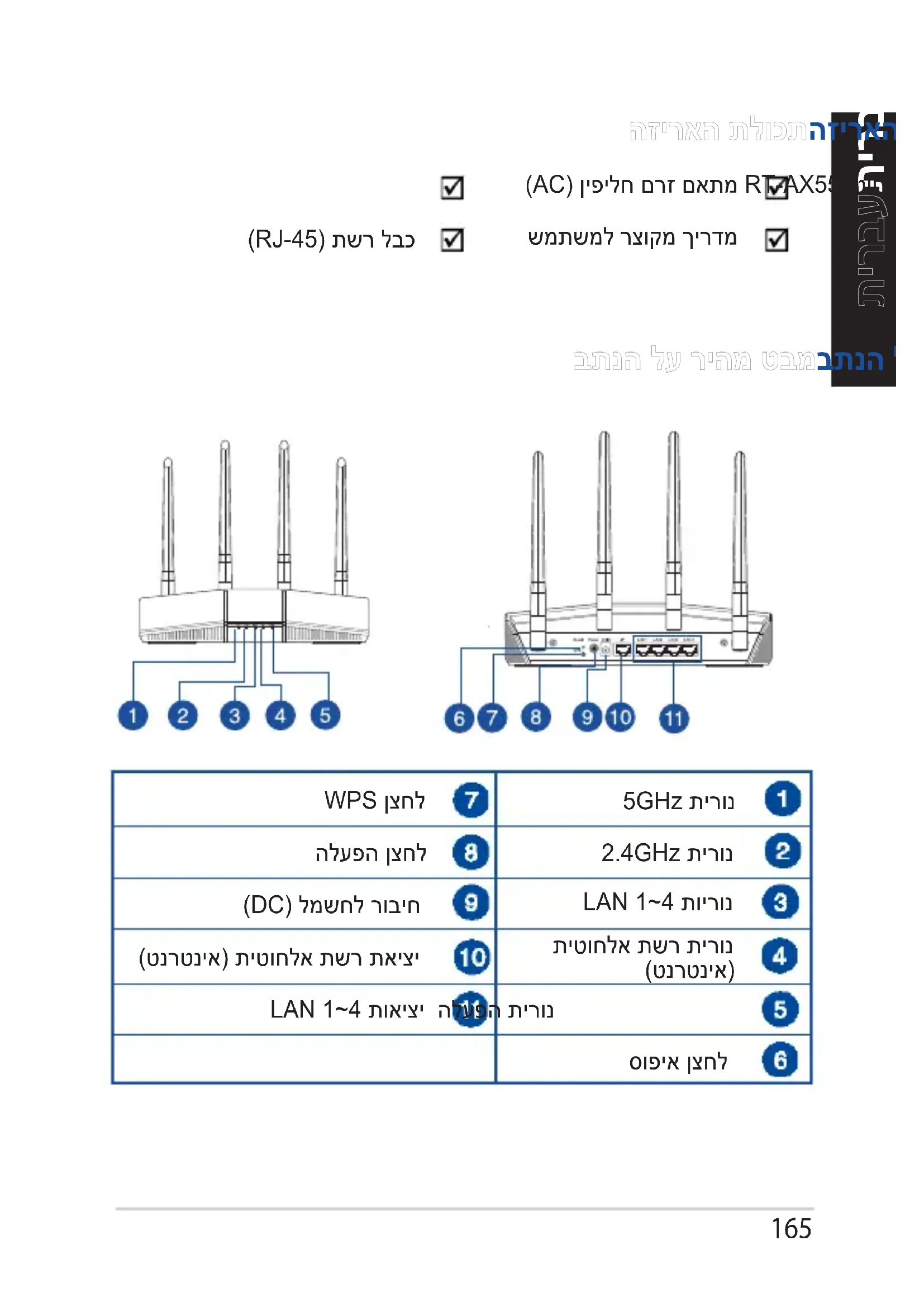 הזיראה תלוכתהזיראה תלוכת בתנה לע ריהמ טבמבתנה לע ריהמ טבמ )AC( ןיפילח םרז םאתמ RT-AX55 יטוחלא בתנ שמתשמל רצוקמ ךירדמ )RJ-45( תשר לבכ166