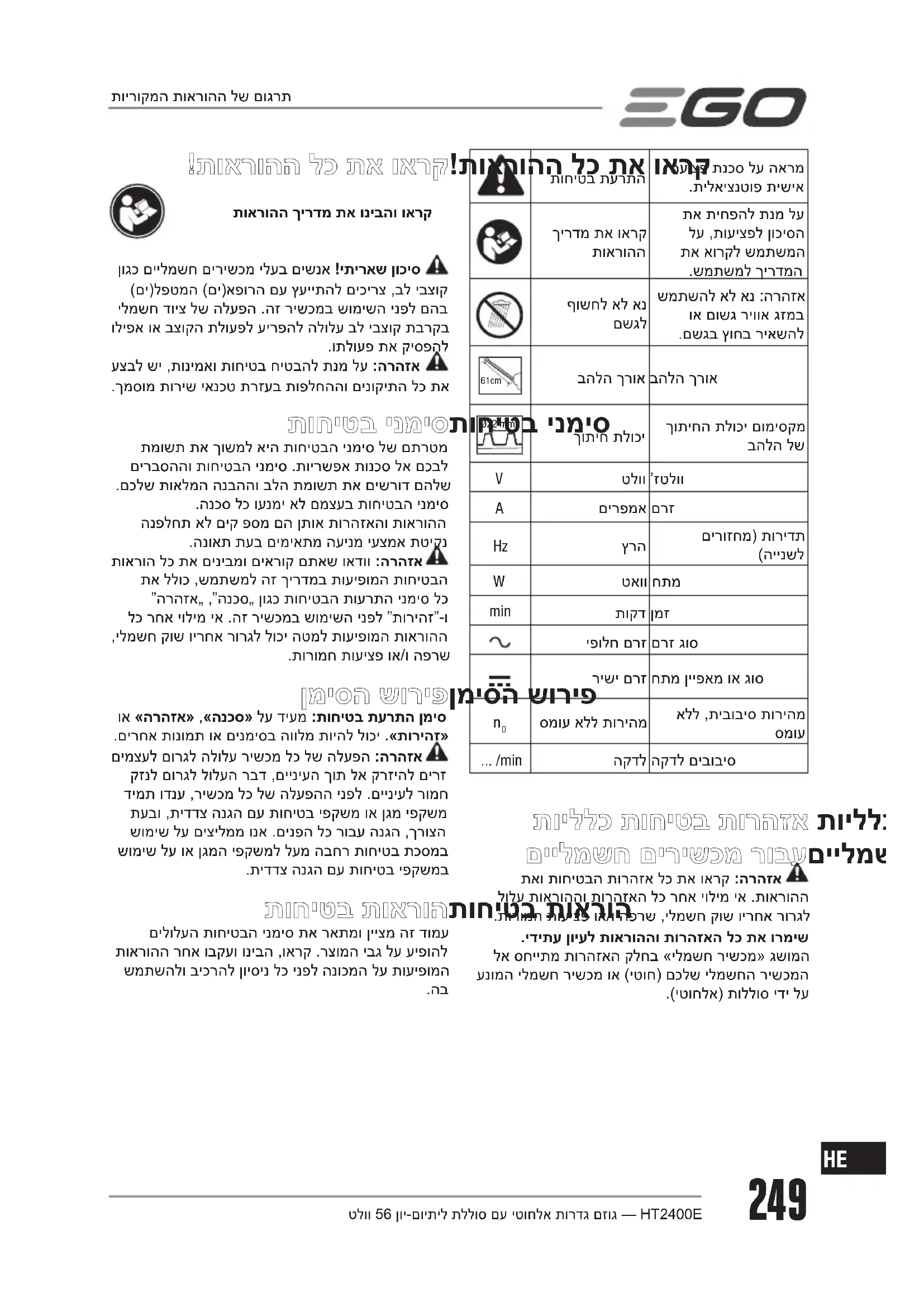 HT2401E - מספרי גדרות EGO - מדריך משתמש חינמי
