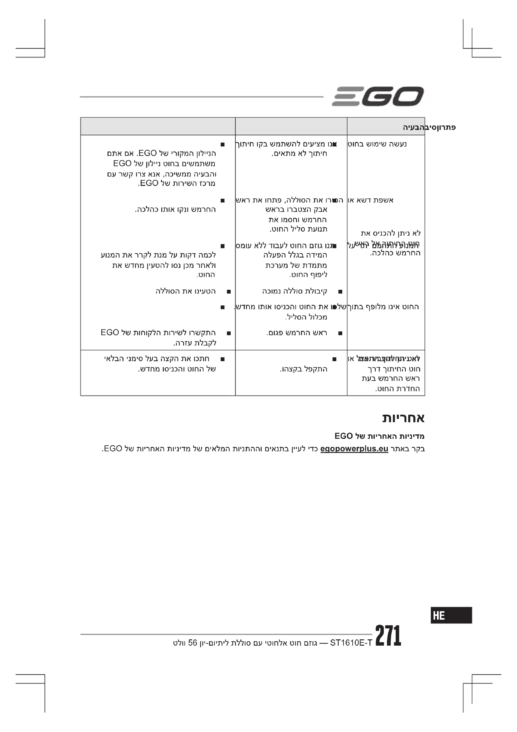 EGO לש תוירחאה תוינידמ .EGO לש תוירחאה תוינידמ לש םיאלמה תוינתההו םיאנתב ןייעל ידכ egopowerplus.eu רתאב רקבטלוו 56 ןוי-םויתיל תללוס םע יטוחלא טוח םזוג — ST1610E-T272