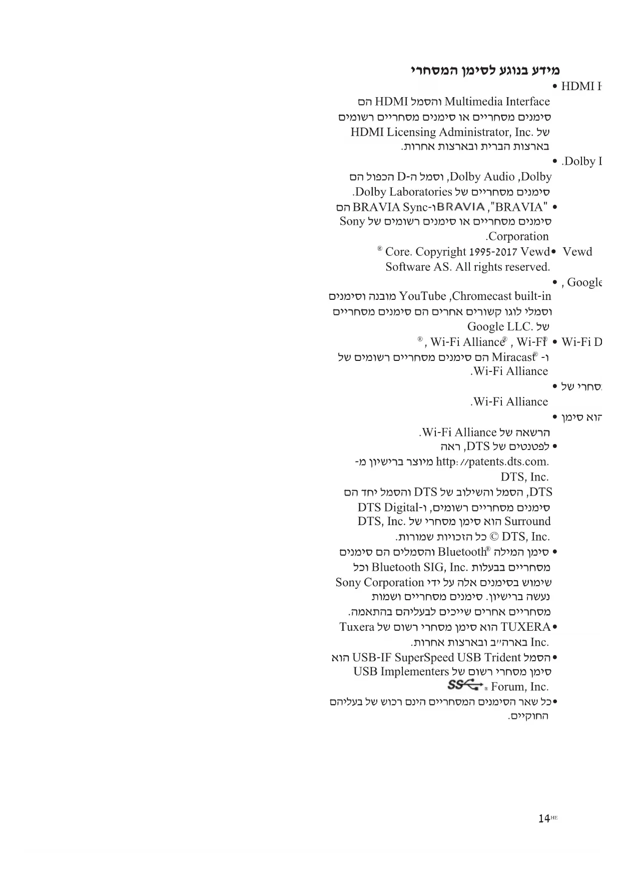 - .םה.BRAVIA.Sync-ו. .,"BRAVIA" .Sony.לש.םימושר.םינמיס.וא.םיירחסמ.םינמיס Corporation .Vewd