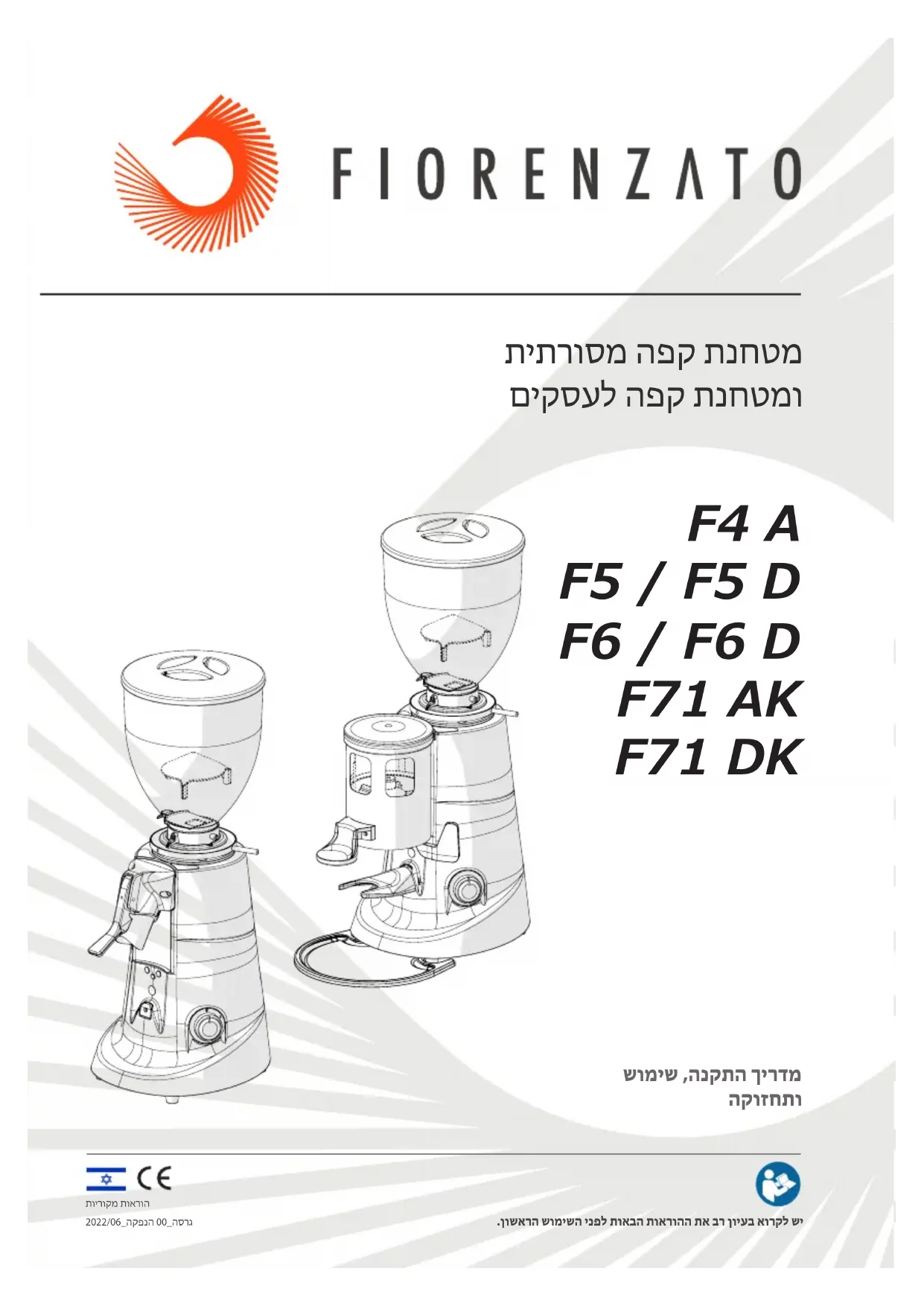 .ןושארה שומישה ינפל תואבה תוארוהה תא בר ןויעב אורקל שי תוירוקמ תוארוה 2022/06_הקפנה 00_הסרג F4 A F5 / F5 D F6 / F6 D F71 AK F71 DK תיתרוסמ הפק תנחטמ םיקסעל הפק תנחטמו2022/06 הקפנה 00_םיקסעל הפק תונחטמ + הפק ת ונחטמ | Fiorenzato 40 / 2