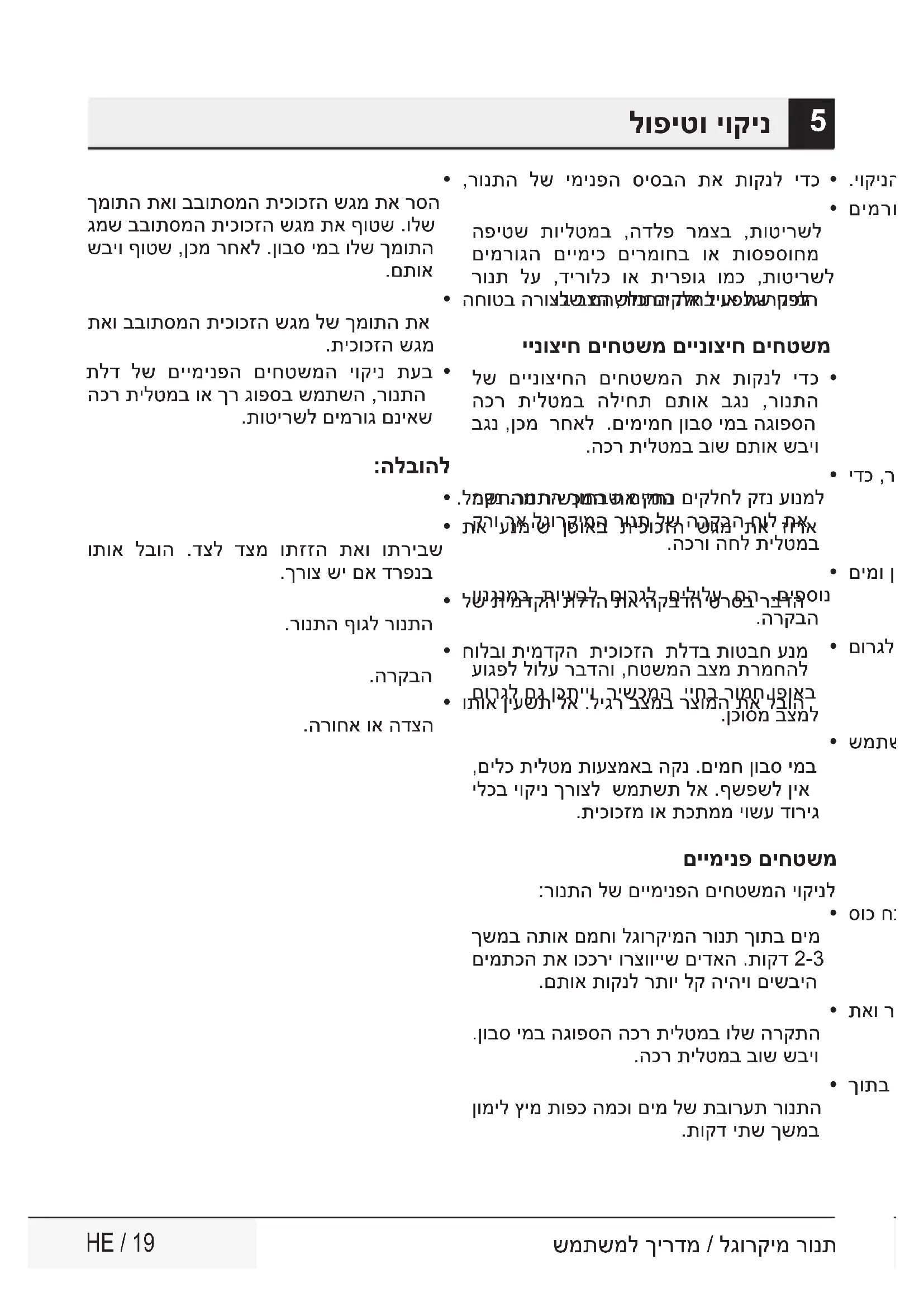 םורגל הלולע יקנ בצמב רונתה לע הרימש יא עוגפל לולע רבדהו ,חטשמה בצמ תרמחהל םורגל םג ןכתייו רישכמה ייחב רומח ןפואב .ןכוסמ בצמל שמתשה :םיכומס םיקלחו תלדה ימטא יוקינ ,םילכ תילטמ תועצמאב הקנ .םימח ןובס ימב ילכב יוקינ ךרוצל שמתשת לא .ףשפשל ןיא .תיכוכזמ וא תכתממ יושע דוריג םיימינפ םיחטשמ :רונתה לש םיימינפה םיחטשמה יוקינל סוכ חנה ,ושבייתהש םימתכה תא ךכרל ידכ ךשמב התוא םמחו לגורקימה רונת ךותב םימ םימתכה תא וככרי ורצווייש םידאה .תוקד 2-3 .םתוא תוקנל רתוי לק היהיו םישביה תאו רונתה לש םיימינפה םיחטשמה תא הקנ .ןובס ימב הגופסה הכר תילטמב ולש הרקתה .הכר תילטמב בוש שביו ךותב חתרה ,רונתה ךותב תוחיר תרסהל ןומיל ץימ תופכ המכו םימ לש תבורעת רונתה .תוקד יתש ךשמב לופיטו יוקינ