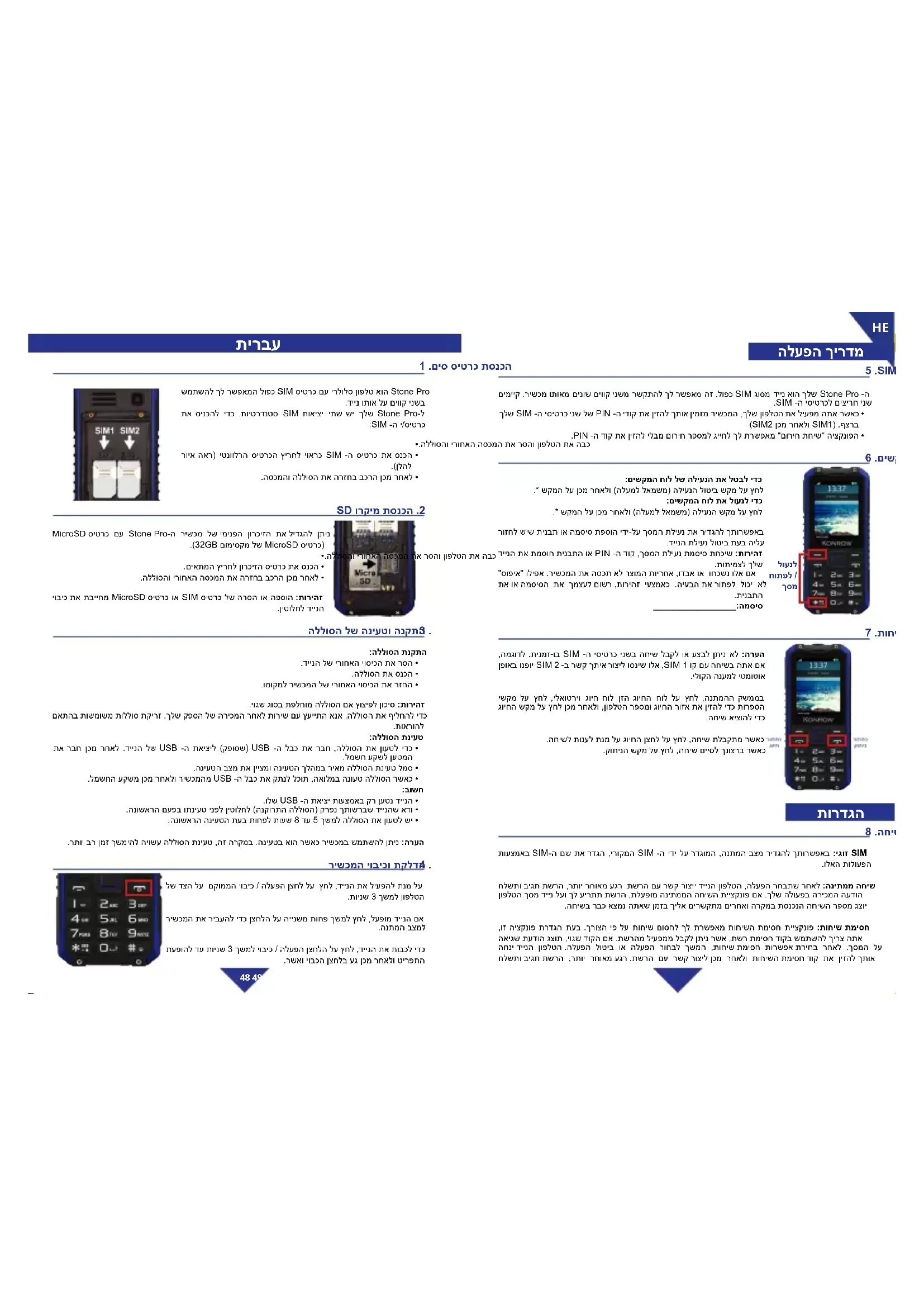 1 .םיס סיטרכ תסנכה שמתשהל ךל רשפאמה לופכ SIM סיטרכ םע ירלולס ןופלט אוה Stone Pro .דיינ ותוא לע םיווק ינשב תא סינכהל ידכ .תויטרדנטס SIM תואיצי יתש שי ךלש Stone Pro-ל :SIM -ה י/סיטרכ