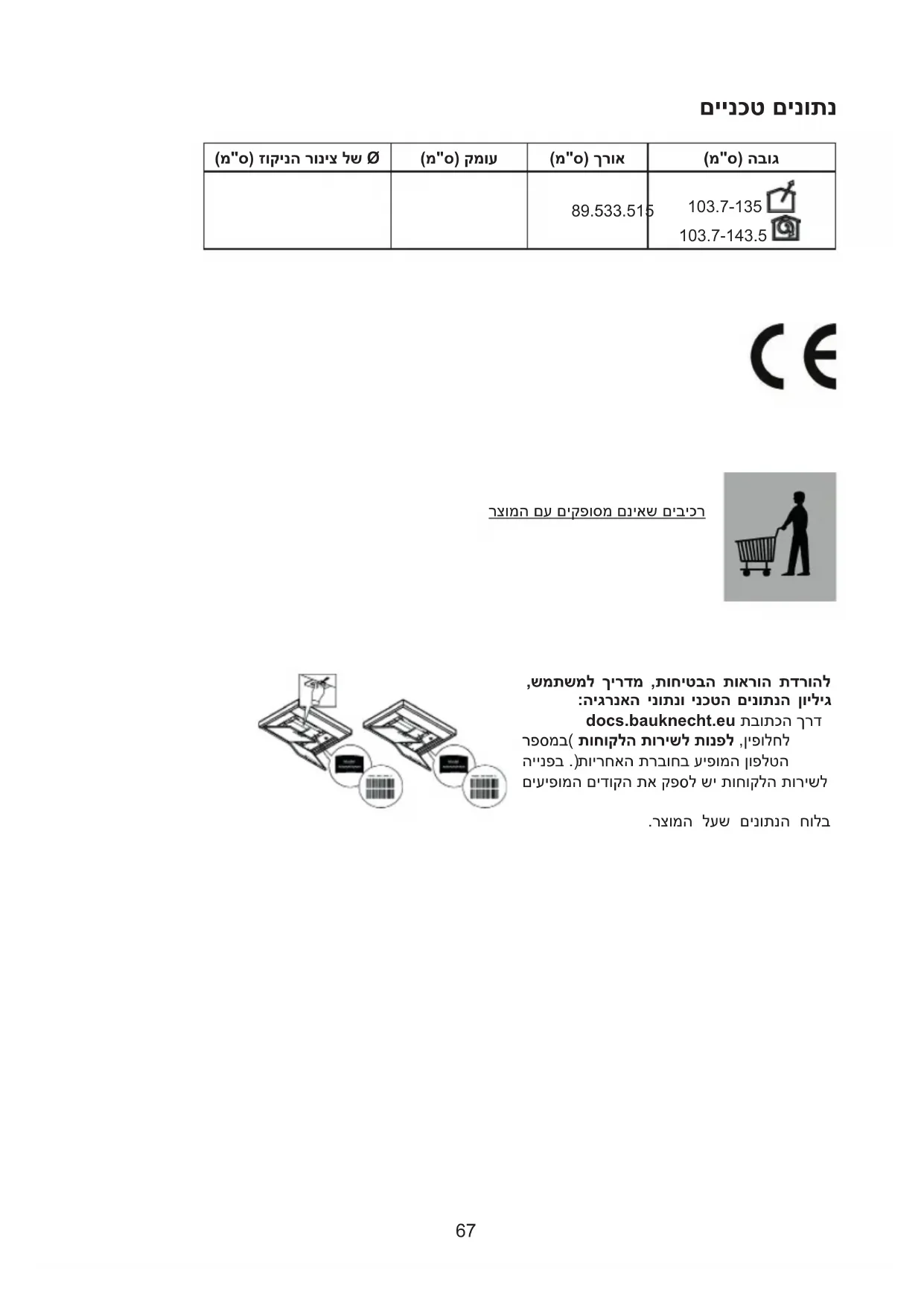 רצומה םע םיקפוסמ םניאש םיביכר ,שמתשמל ךירדמ ,תוחיטבה תוארוה תדרוהל :היגרנאה ינותנו ינכטה םינותנה ןויליג docs.bauknecht.eu תבותכה ךרד רפסמב( תוחוקלה תורישל תונפל ,ןיפולחל