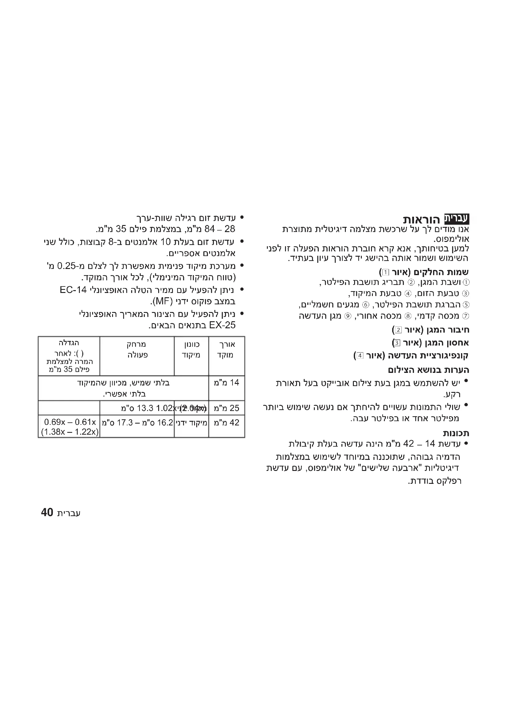 ZUIKO DIGITAL ED 1442mm 1:3.55.6 - עדשה OLYMPUS - מדריך משתמש חינמי