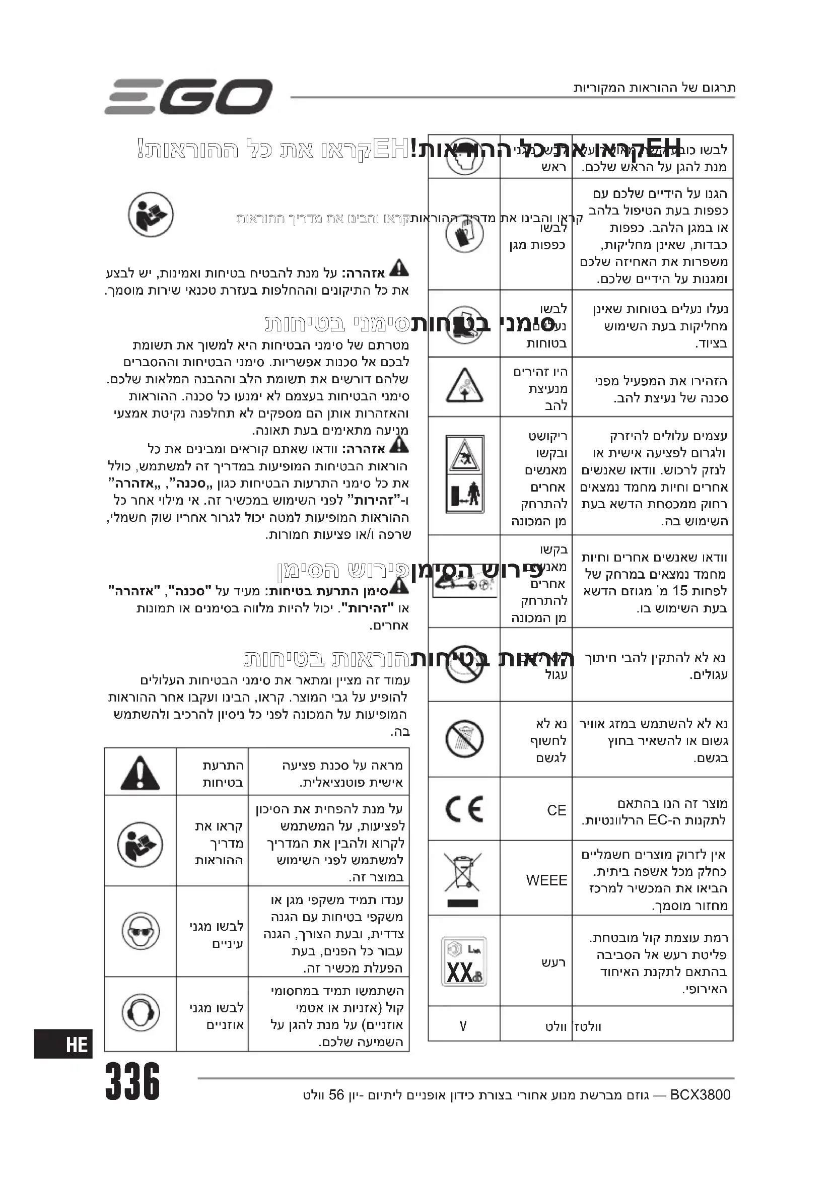 מצא את מדריך המכשיר בחינם BCX3800E EGO בפורמט PDF.