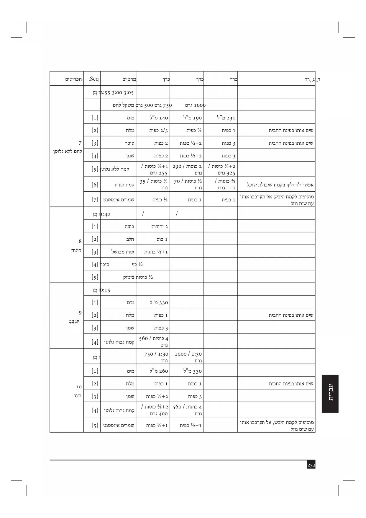 ן ַמ ְ ז 3:55 4:00 4:05 םחל לקשמ םרג 500 םרג 750 םרג 1000 ]1[ םימ ל”מ 180 ל”מ 220 ל”מ 270 ]2[ חלמ תיפכ 2/3 תיפכ ¾ תיפכ 1 תיבחה תניפב ותוא םיש ]3[ רכוס ףכ ¾+1 תופכ 2 תופכ 3 תיבחה תניפב ותוא םיש ]4[ ןמש תופכ 2 תופכ ½+2 תופכ 3 ]5[ ןטולג הובג חמק 145 / סוכ 1