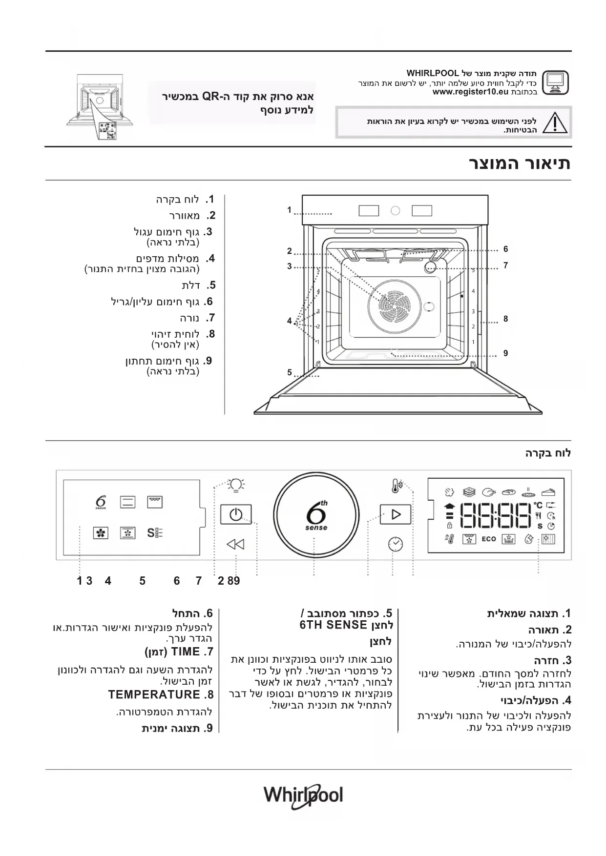 - Alternatively, contact our After-sales Service (See phone number in the warranty booklet). When contacting our After- sales Service, please state the codes provided on your product's identi cation plate. ®/TM/© 2025 Whirlpool. Produced under license.WHIRLPOOL לש רצומ תינקש הדות רצומה תא םושרל שי ,רתוי המלש עויס תיווח לבקל ידכ www.register10.eu תבותכב תוארוה תא ןויעב אורקל שי רישכמב שומישה ינפל