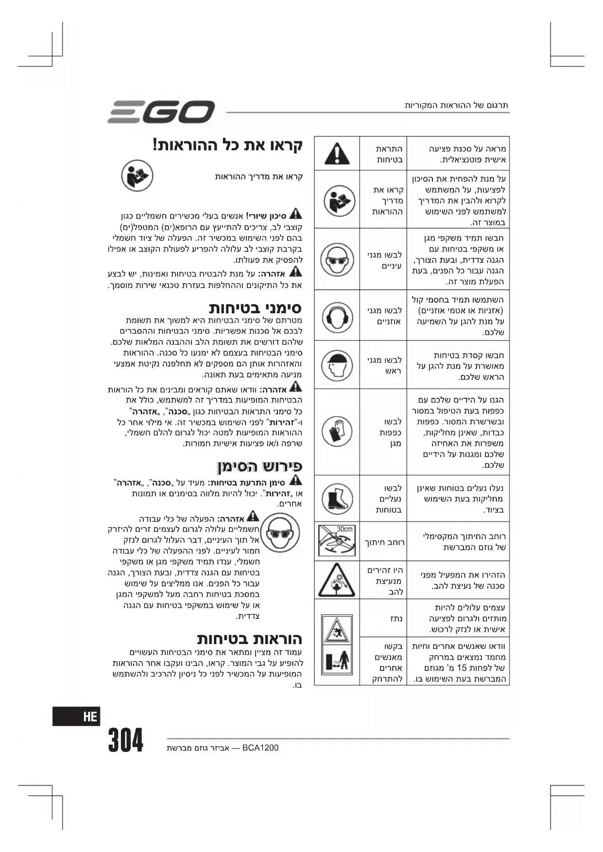מצא את מדריך המכשיר בחינם BCA1200 EGO בפורמט PDF.