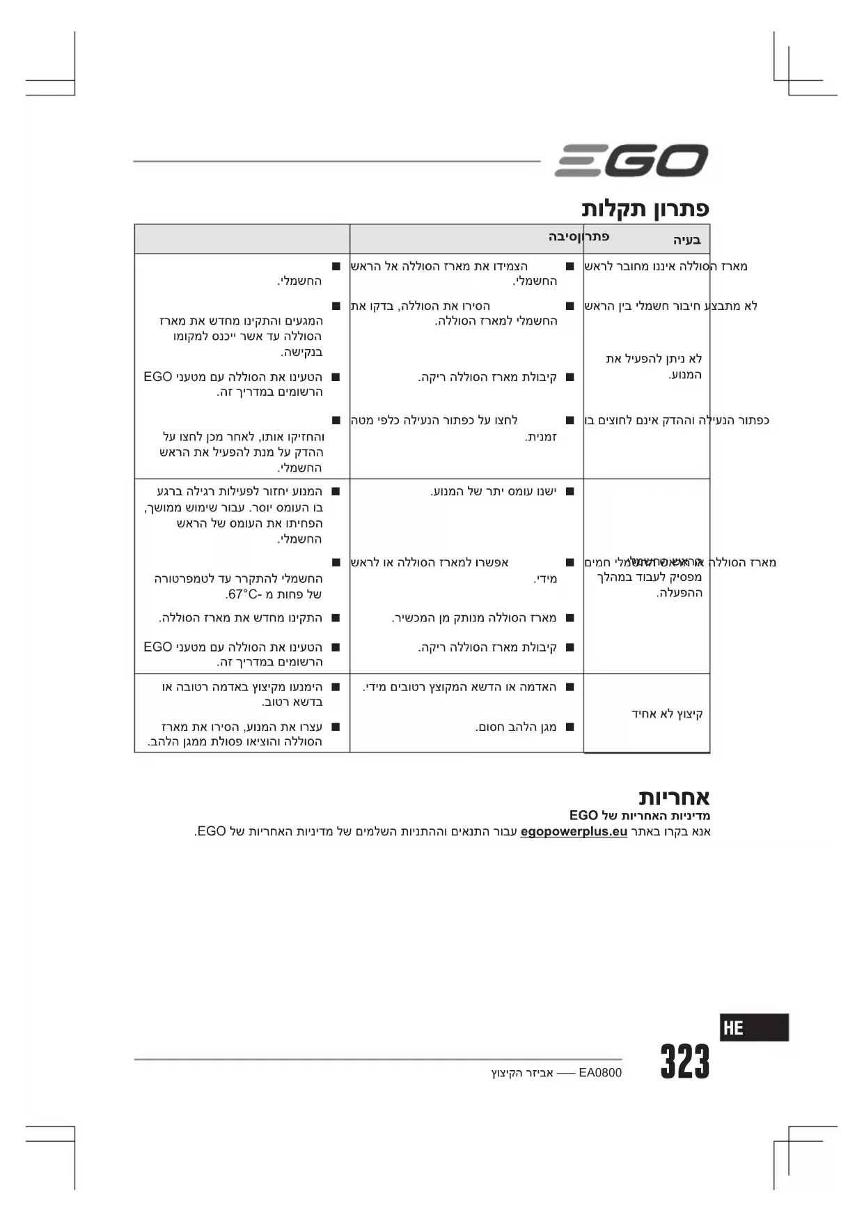 EA0800 - כלים רב-תכליתיים EGO - מדריך משתמש חינמי