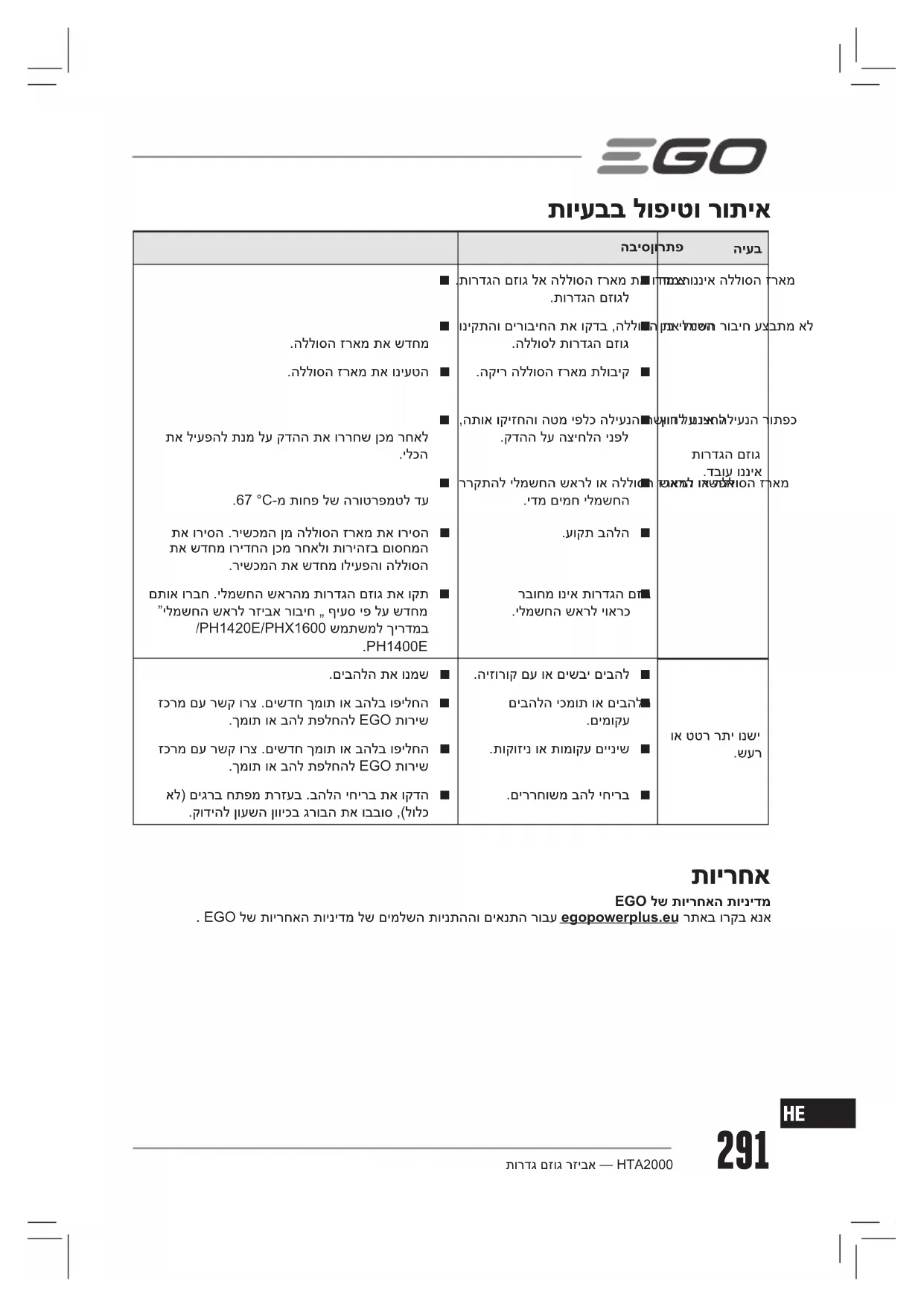 HTA2000 - כלים רב-תכליתיים EGO - מדריך משתמש חינמי