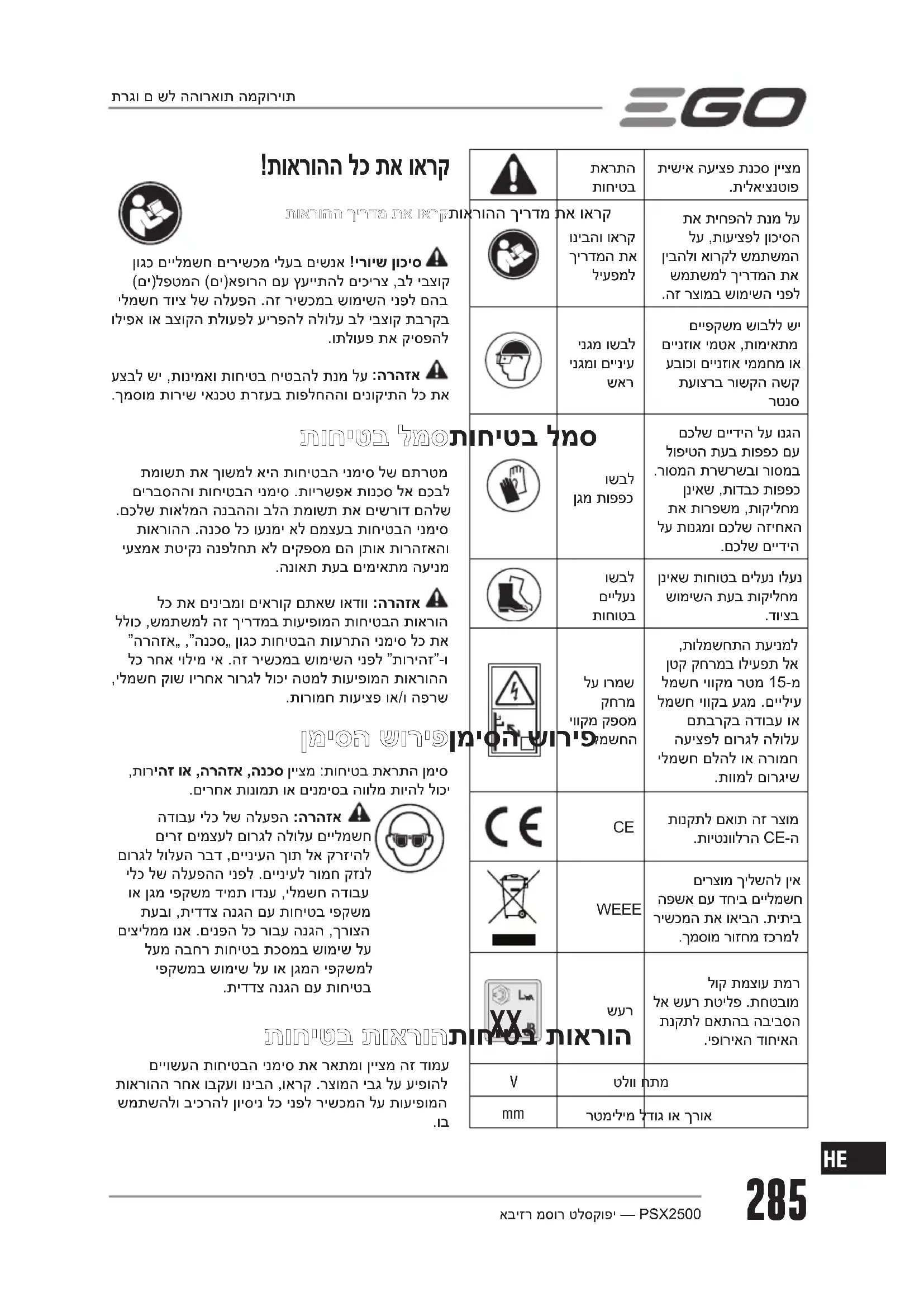 PSX2500 - כלים רב-תכליתיים EGO - מדריך משתמש חינמי