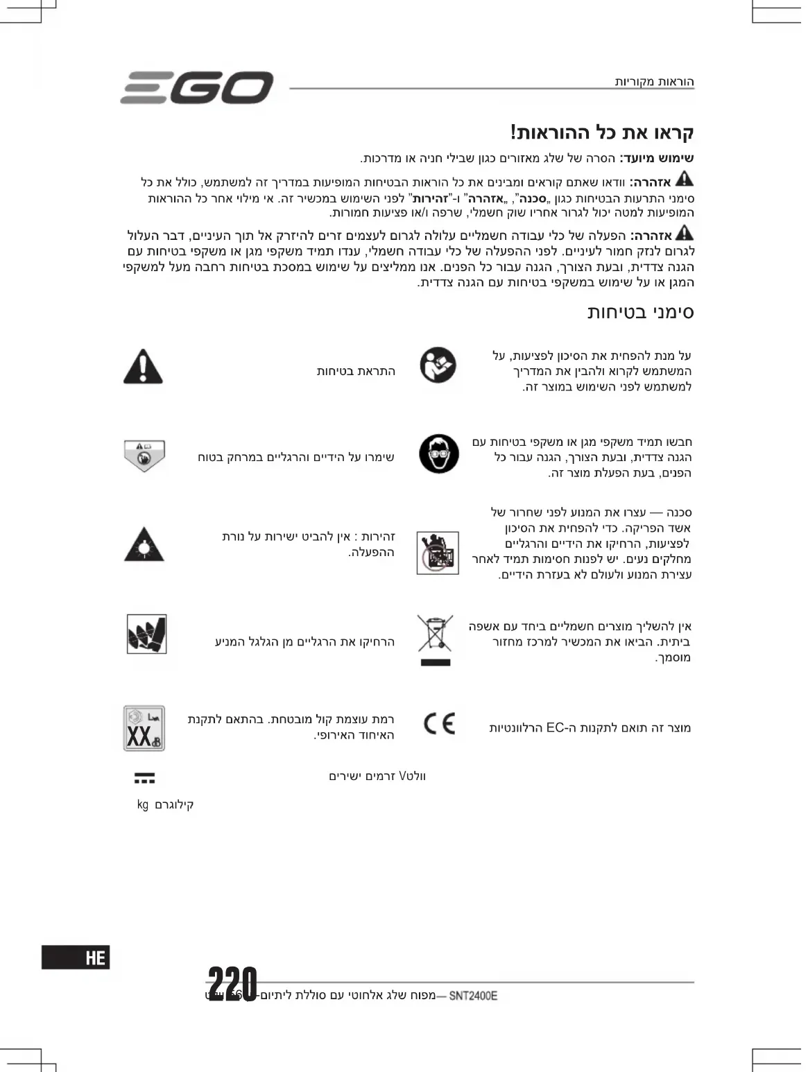 SNT2400EK2753 - מפוח EGO - מדריך משתמש חינמי