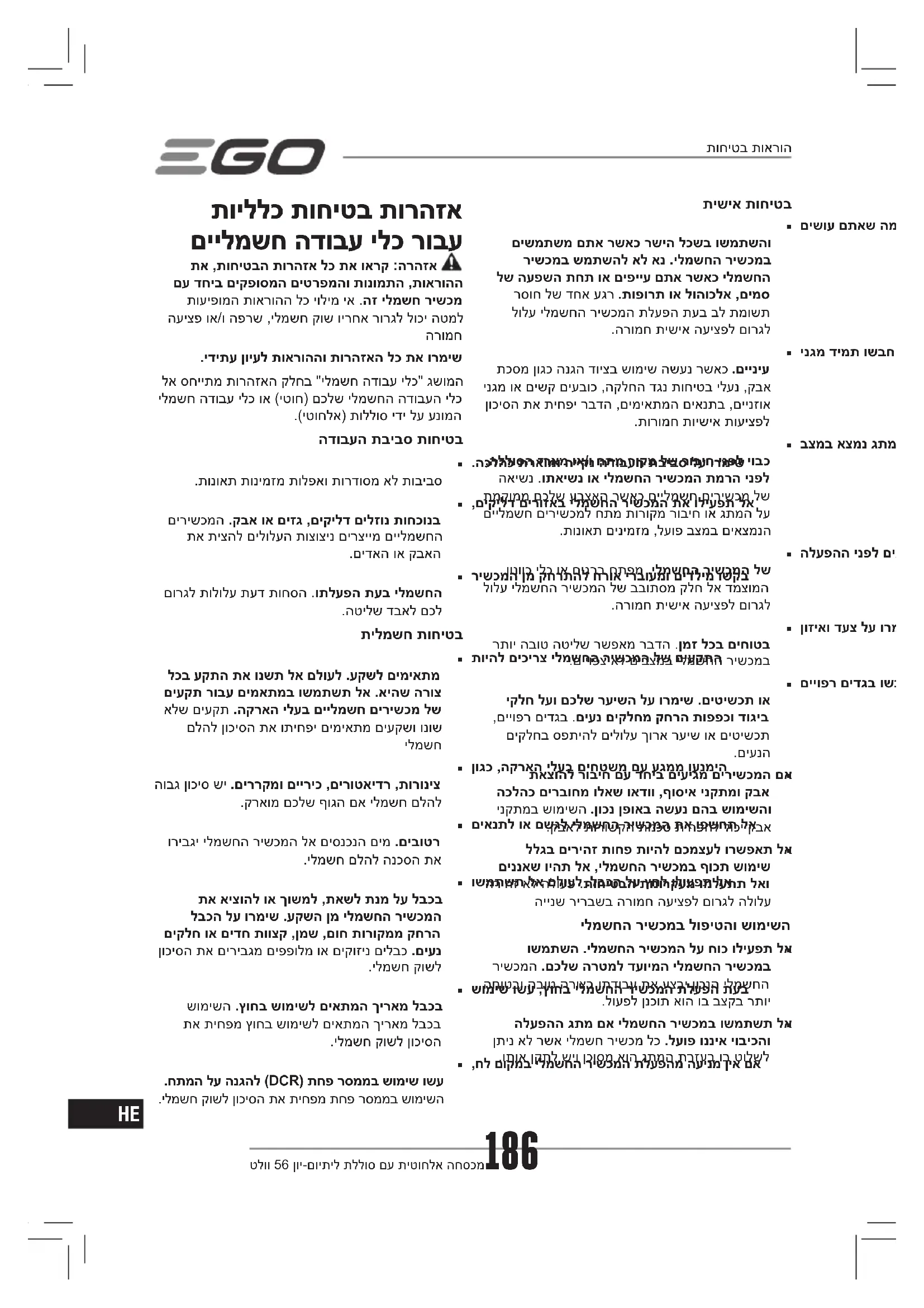 LM2135ESP - מכסחת דשא EGO - מדריך משתמש חינמי
