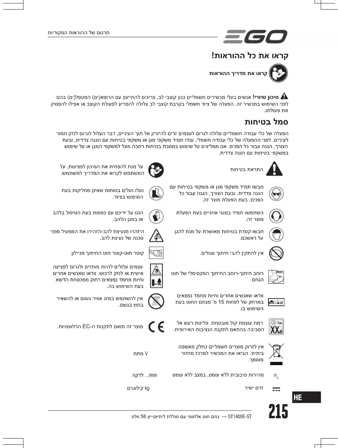 EGO לש תוירחאה תוינידמ .EGO לש תוירחאה תוינידמ לש םימלשה תוינתההו םיאנתה רובע egopowerplus.com רתאב ורקב אנא — ST1400E-ST222