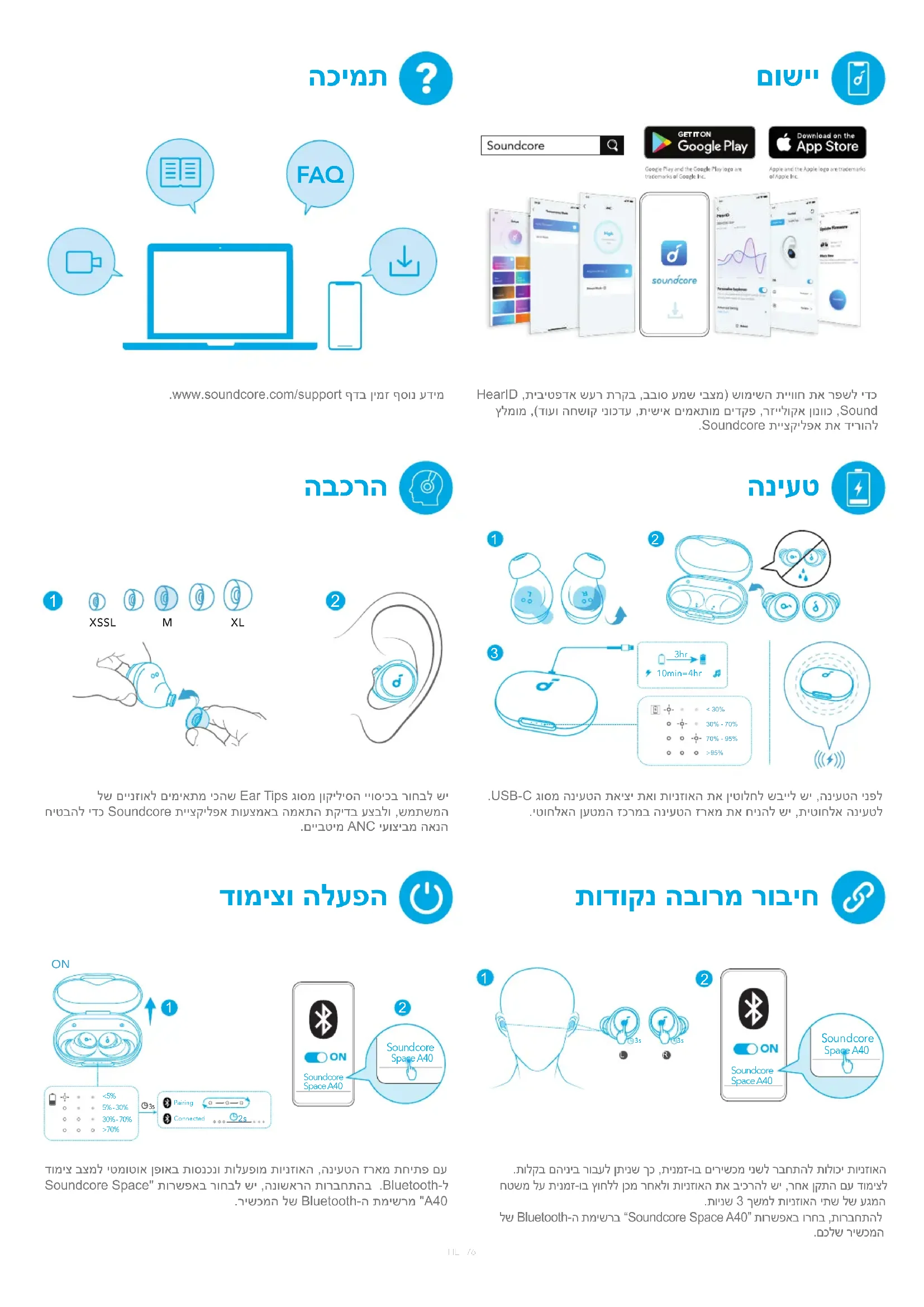 Space A40 - אוזנייה soundcore - מדריך משתמש חינמי