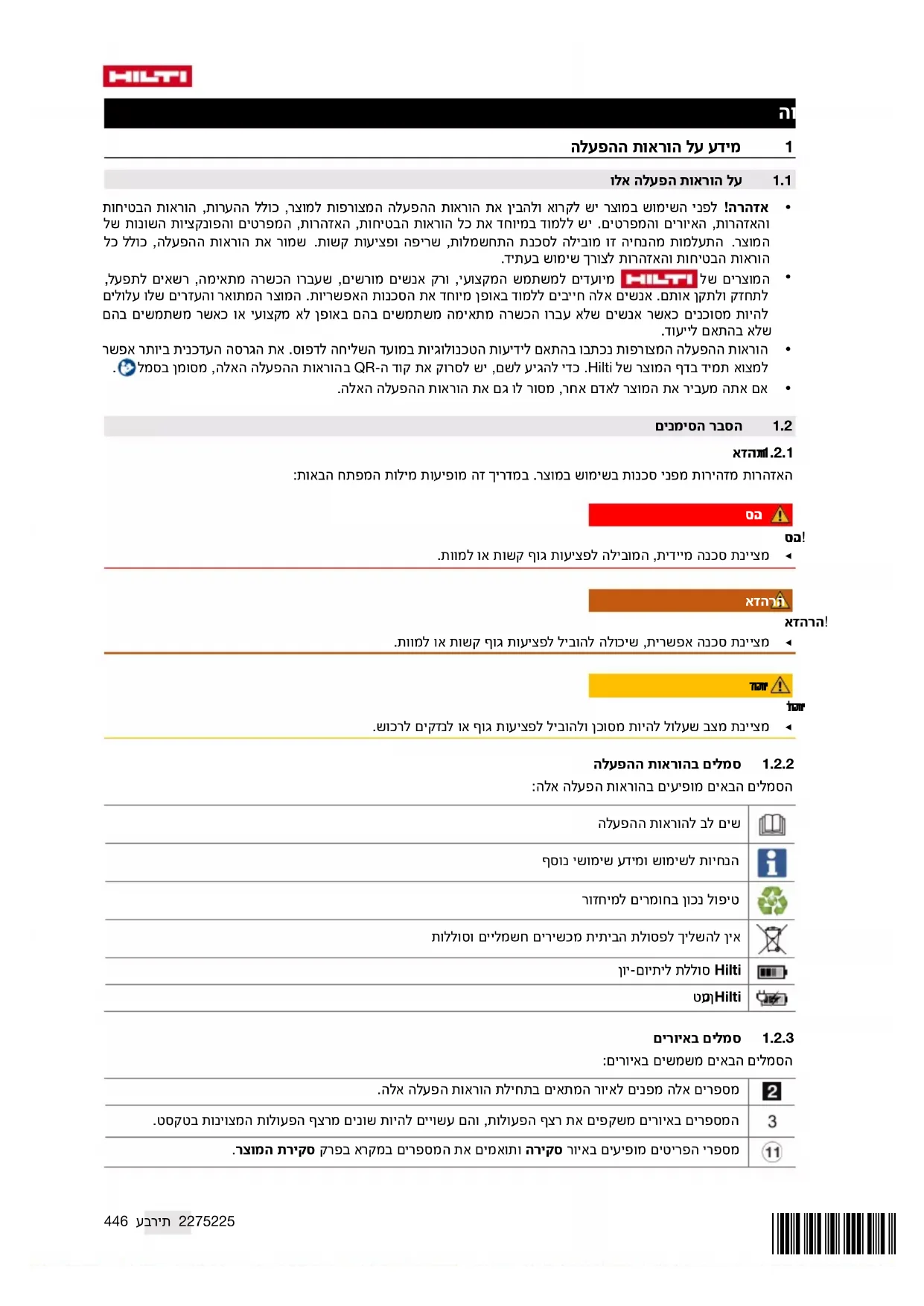 - הוראותההפעלההמצורפותנכתבובהתאםלידיעותהטכנולוגיותבמועדהשליחהלדפוס.אתהגרסההעדכניתביותראפשר למצואתמידבדףהמוצרשלHilti.כדילהגיעלשם,ישלסרוקאתקודה-QRבהוראותההפעלההאלה,מסומןבסמל.