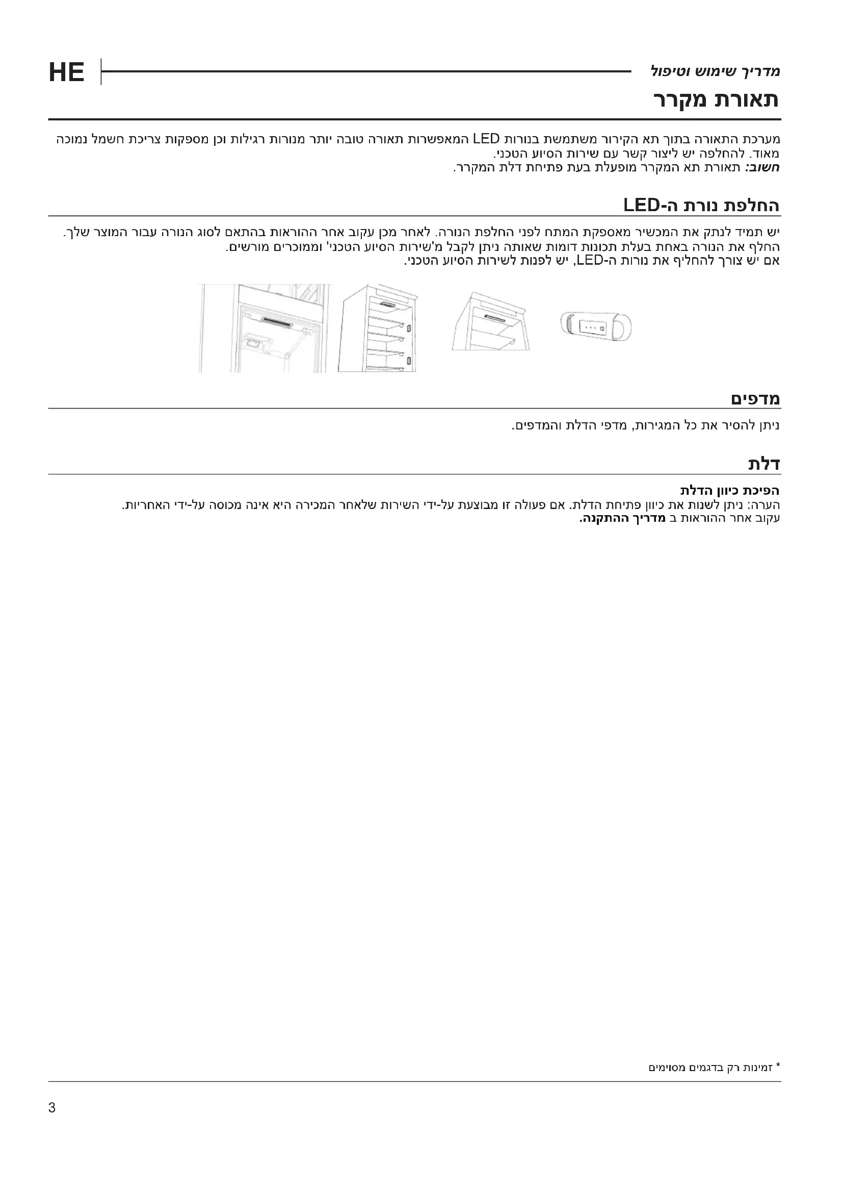 .חרקה תרסהל םידח םימצעב שמתשהל ןיא הרקמ םושב .האפקהה אתל ןתוא רזחהו הבוגה 2/3-ל דע םימב חרקה תוריגמ תא אלמ תוריגמה תרסה הרוגס תלדהש אדו .תוריגמה אלל האפקהה אתב שמתשהל ןתינ ,חפנ דוע לבקל ידכ .ןתוא רסהו ןתוא םרה ,הצוחה תוריגמה תא ךושמ .םיפדמ/תותשרל ןוזמה תרזחה רחאל בטיה Total No Frost תכרעמ .ררקמה אתב םגו איפקמב םג תינדי הרשפה לש החרטה תא תלטבמו ,חרק תורצוויה השעמל תענומ Total No Fro תכרעמ .חרק תורבטצה עונמל ידכ םיאתה ינשב רק ריווא לש םלשומ רורחס תקפסמ ולש רורוואה תכרעמ םימיוסמ םימגדב קר תונימז *HE