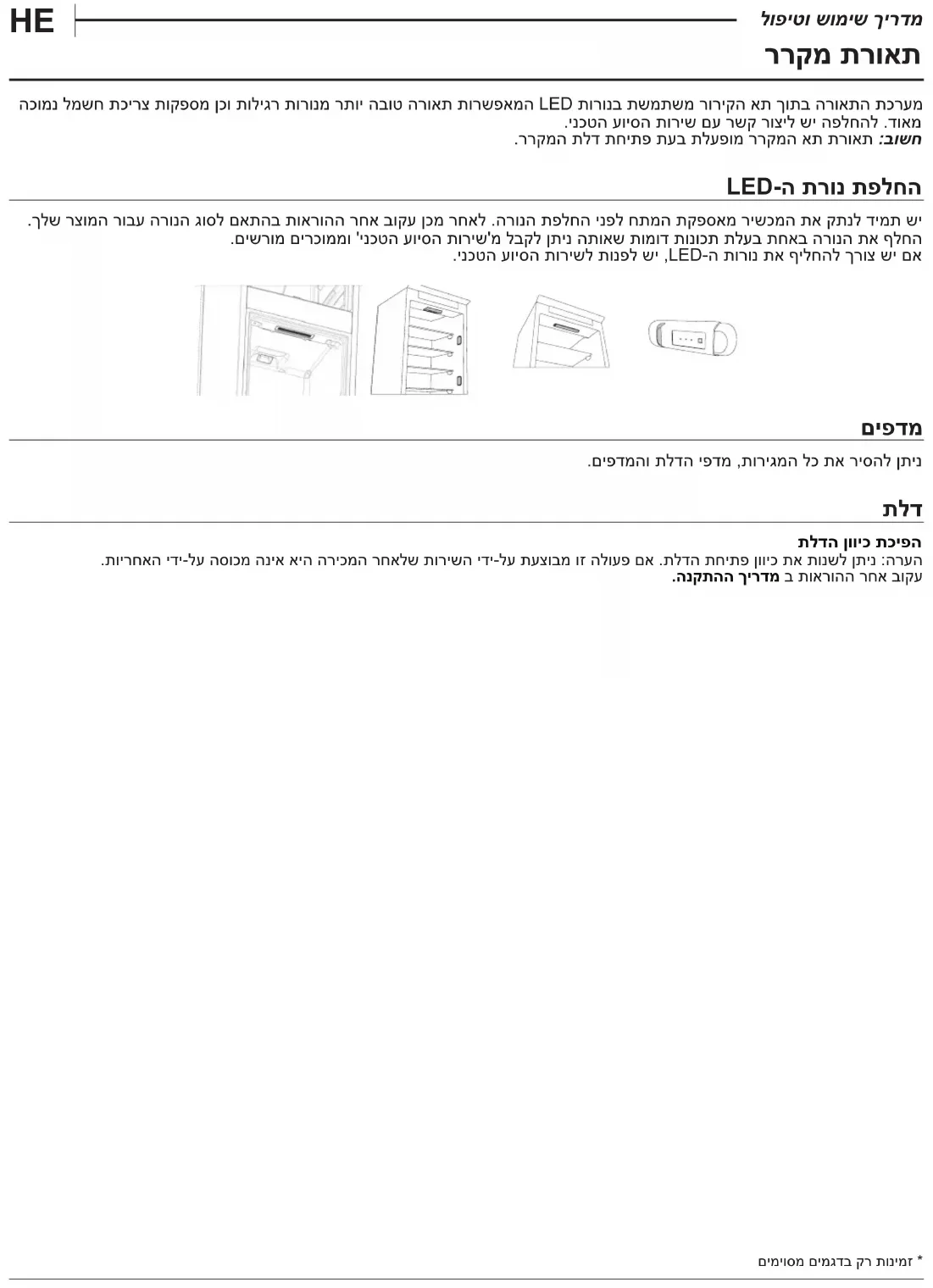 .חרקה תרסהל םידח םימצעב שמתשהל ןיא הרקמ םושב .האפקהה אתל ןתוא רזחהו הבוגה 2/3-ל דע םימב חרקה תוריגמ תא אלמ תוריגמה תרסה הרוגס תלדהש אדו .תוריגמה אלל האפקהה אתב שמתשהל ןתינ ,חפנ דוע לבקל ידכ .ןתוא רסהו ןתוא םרה ,הצוחה תוריגמה תא ךושמ .םיפדמ/תותשרל ןוזמה תרזחה רחאל בטיה Total No Frost תכרעמ .ררקמה אתב םגו איפקמב םג תינדי הרשפה לש החרטה תא תלטבמו ,חרק תורצוויה השעמל תענומ Total No Fro תכרעמ .חרק תורבטצה עונמל ידכ םיאתה ינשב רק ריווא לש םלשומ רורחס תקפסמ ולש רורוואה תכרעמ םימיוסמ םימגדב קר תונימז *HE