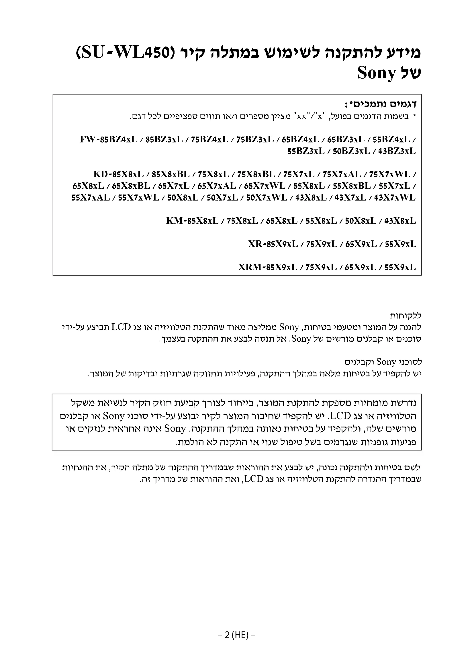 - גצ וא היזיוולטה תיתחת תא תולק ךושמל הסנ םא .המידק הענ אל איהש אדוול תנמ-לע ךילא LCD שיו ,ןוכנ תבכרומ הניא איה זא ,יהשלכ העונת הנשי. העוצרה תא בוש קזחל FW-85BZ4xL / 85BZ3xL / דבלמ 75BZ4xL / 75BZ3xL, KD-85X8xL / 85X8xBL / 75X8xL / 75X8xBL / 75X7xL / 75X7xAL / 75X7xWL, KM-85X8xL / 75X8xL, XR-85X9xL / 75X9xL, XRM-85X9xL / 75X9xL