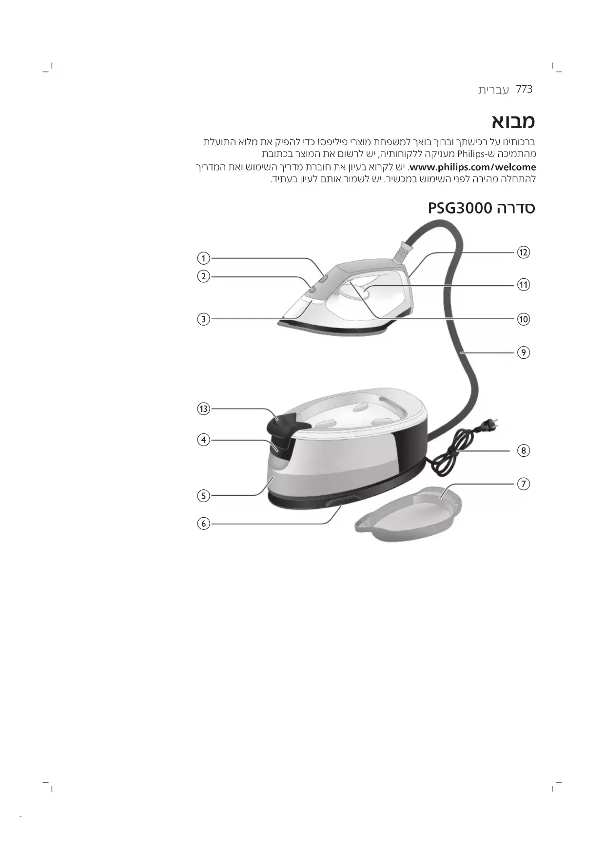 תלעותה אולמ תא קיפהל ידכ !ספיליפ ירצומ תחפשמל ךאוב ךורבו ךתשיכר לע וניתוכרבתבותכב רצומה תא םושרל שי ,היתוחוקלל הקינעמ Philips-ש הכימתהמךירדמה תאו שומישה ךירדמ תרבוח תא ןויעב אורקל שי .www.philips.com/welcome.דיתעב ןויעל םתוא רומשל שי .רישכמב שומישה ינפל הריהמ הלחתהל PSG3000 הרדס