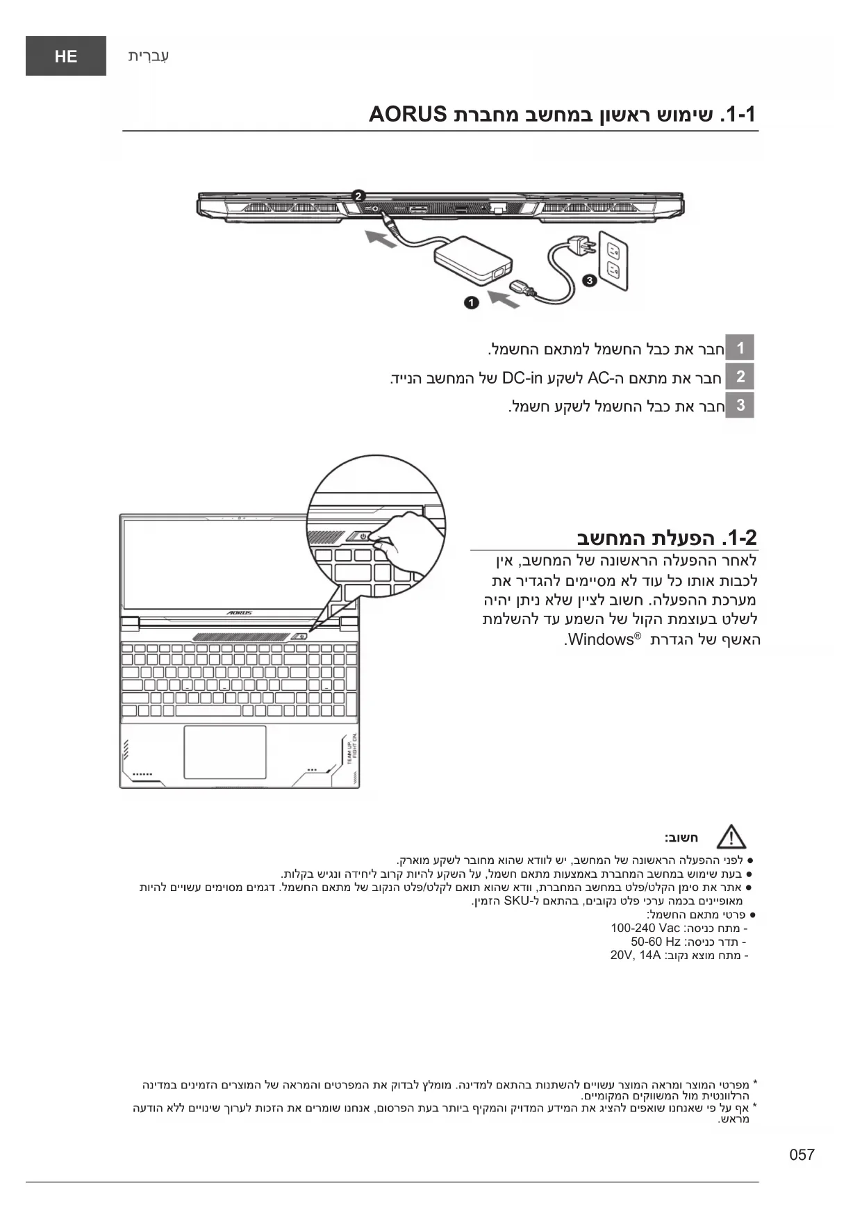 AORUS תרבחמ בשחמב ןושאר שומיש .1-1 DCIN