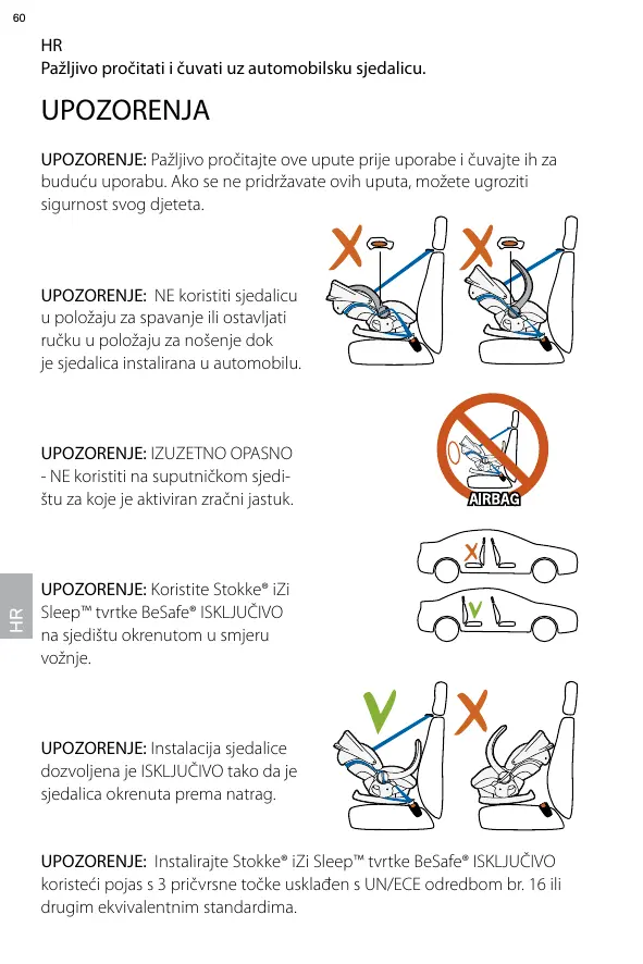 AVERTISSEMENT: installer UNIQUEMENT le Stokke® iZi Sleep™ de BeSafe® à l’aide d’une ceinture 3 points approuvée par la réglementation CEE/NU n° 16 ou par d’autres normes équivalentes.