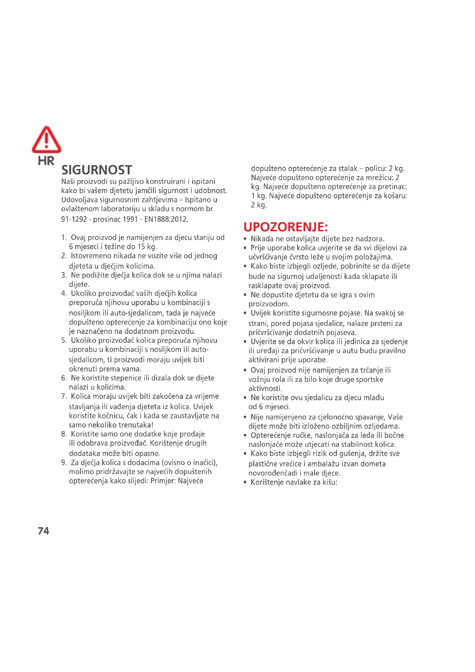 na etiketu. Okoliš Držite sve ambalažne plastične materijale dalje od dometa Vašeg djeteta kako biste izbjegli opasnost od gušenja. Zbog zaštite okoliša, kada prestanete s korištenjem ovog proizvoda, molimo deponirajte proizvod na odgovarajuće mjesto za odlaganje otpada sukladno lokalnim propisima. Upiti Molimo kontaktirajte svog lokalnog Bébéconfort zastupnika ili posjetite naše internetske stranice www.bebeconfort.com. Prilikom toga molimo imajte sljedeće podatke pri ruci: - Serijski broj - Dob (visina) i težina Vašeg djeteta. Jamstvo Naše 24-mjesečno jamstvo odraz je našeg povjerenja u besprijekornu kvalitetu dizajna, idejnih rješenja, izvedbe i učinkovitosti naših proizvoda. Jamčimo da je ovaj proizvod proizveden u skladu s važećim europskim sigurnosnim zahtjevima i standardima kakvoće koji su primjenjivi na ovaj proizvod te da materijal od kojeg je sačinjen, kao i njegova izradba, nemaju nedostataka u trenutku kupnje. Naše 24-mjesečno jamstvo pokriva greške u procesu proizvodnje (materijalu i izradbi) ako se proizvod koristio pri uobičajenim uvjetima u skladu s uputama za uporabu. Kako biste poslali zahtjev za popravak ili zamjenske dijelove za 75(