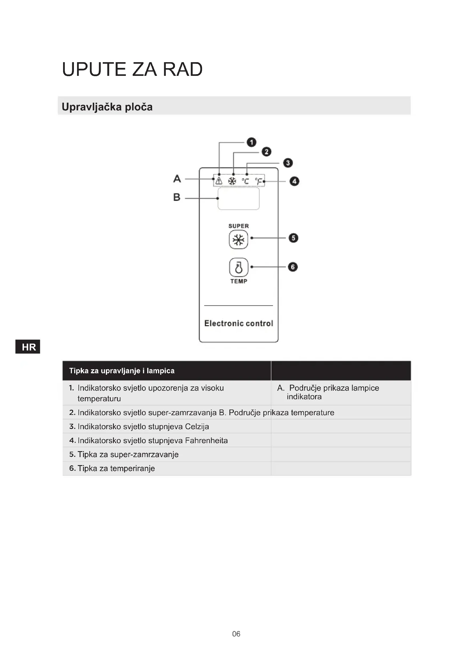 Indikatorsko svjetlo super-zamrzavanja B. Područje prikaza temperature
